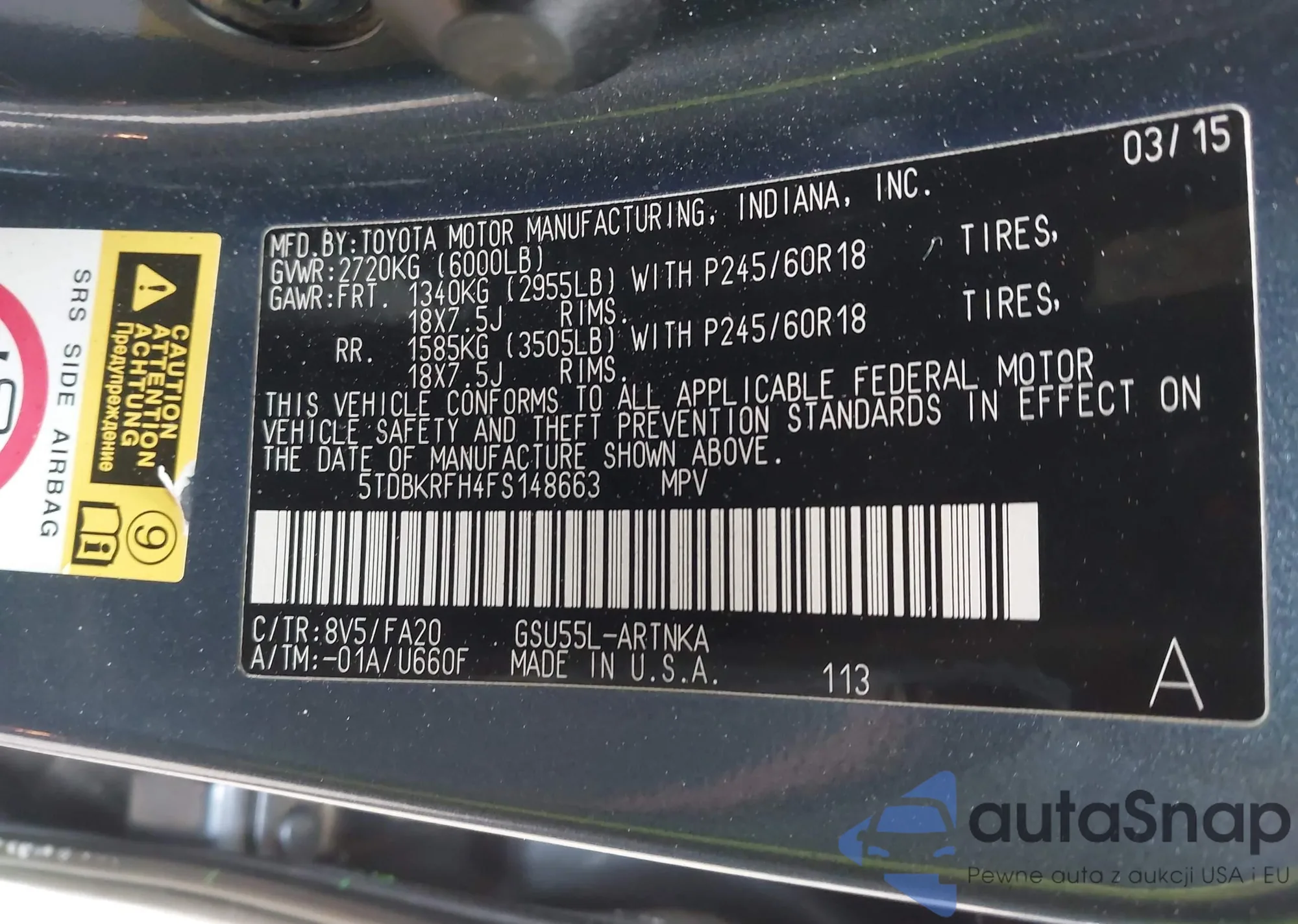 • VIN 5TDJKRFH6GS250530