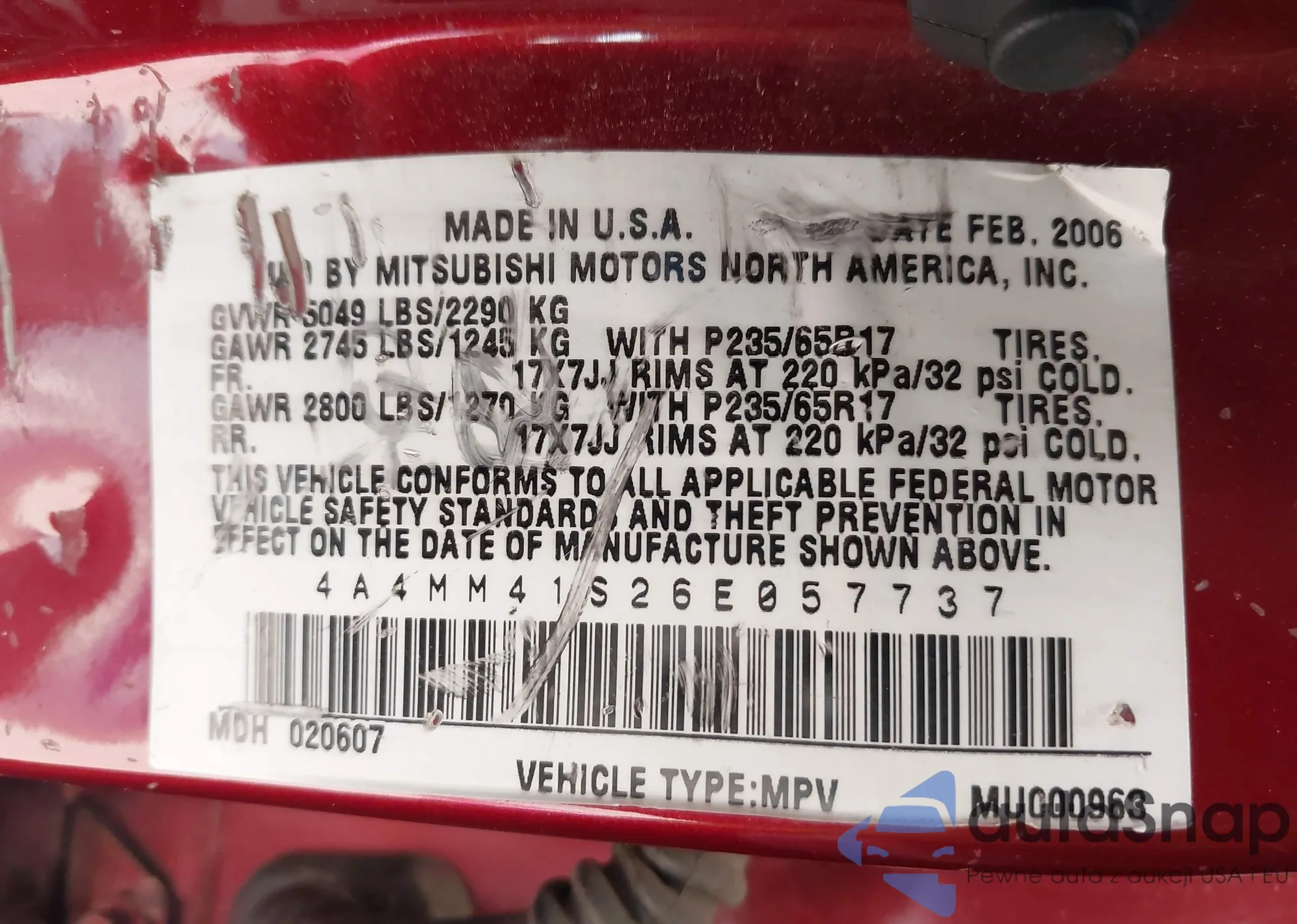 LOT: 43905071 VIN: 4A4MM41S26E057737
