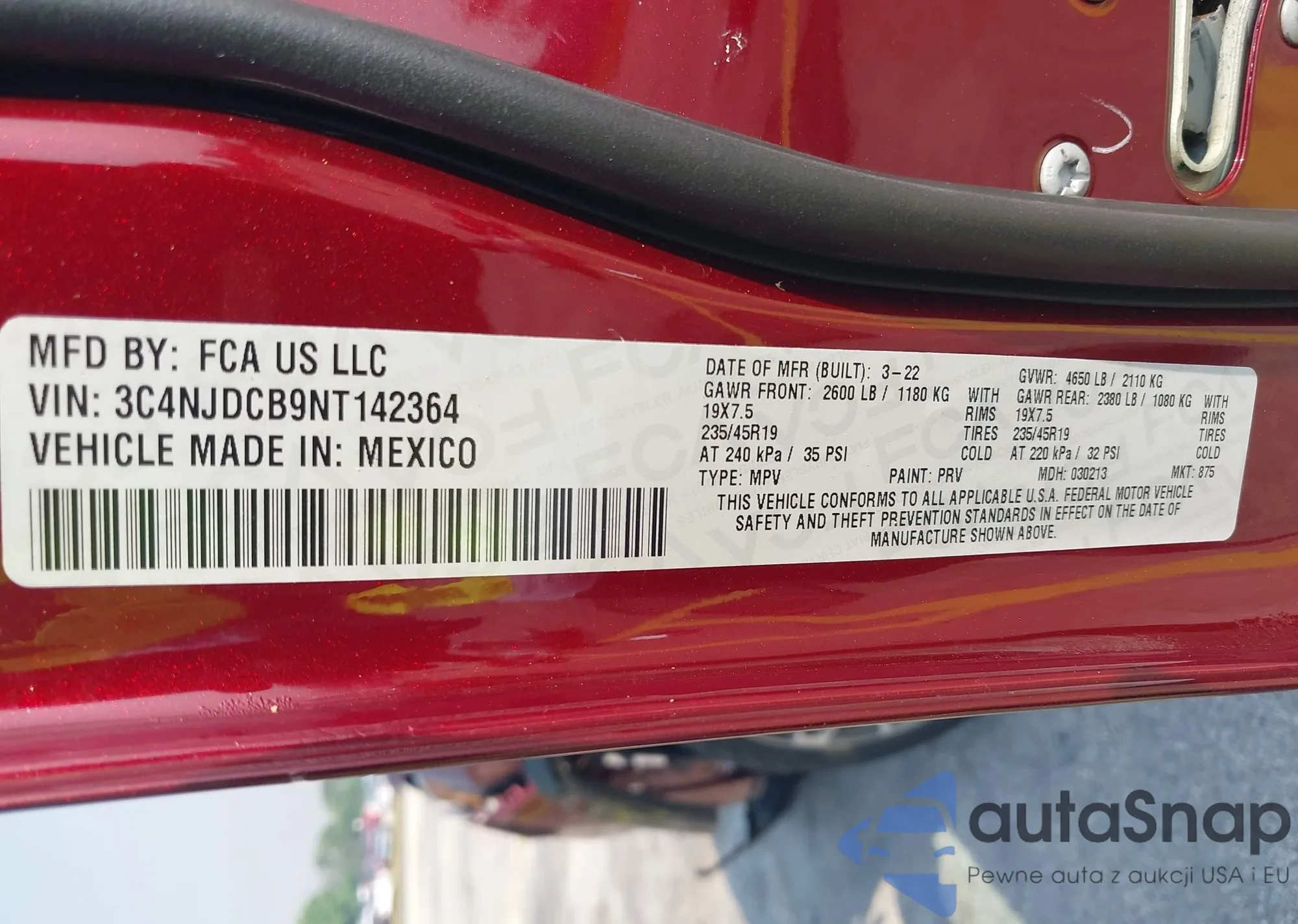 LOT: 42671933 VIN: 3C4NJDBB7KT790623