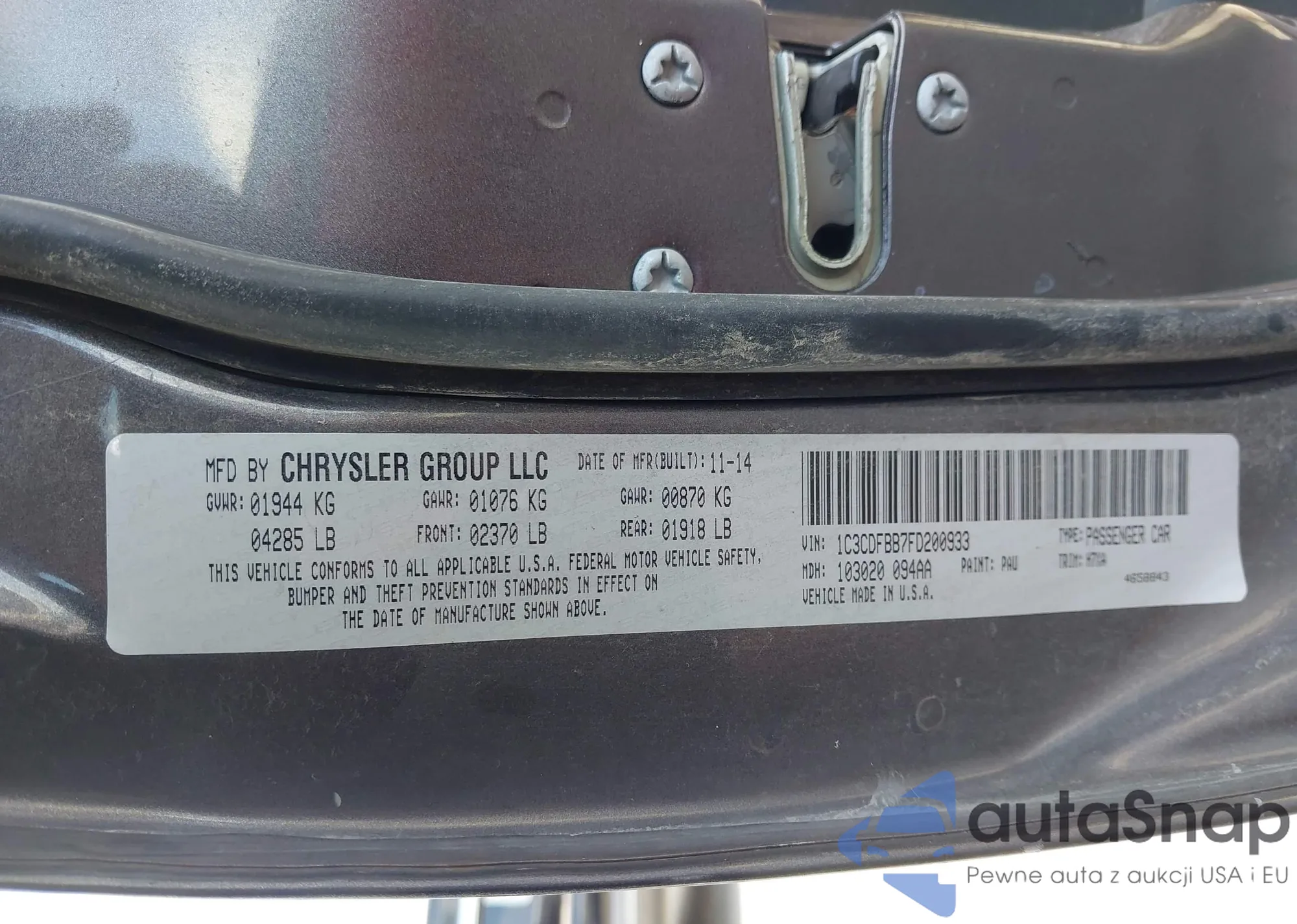 LOT: 43373013 VIN: 1C3CDFBB7FD200933