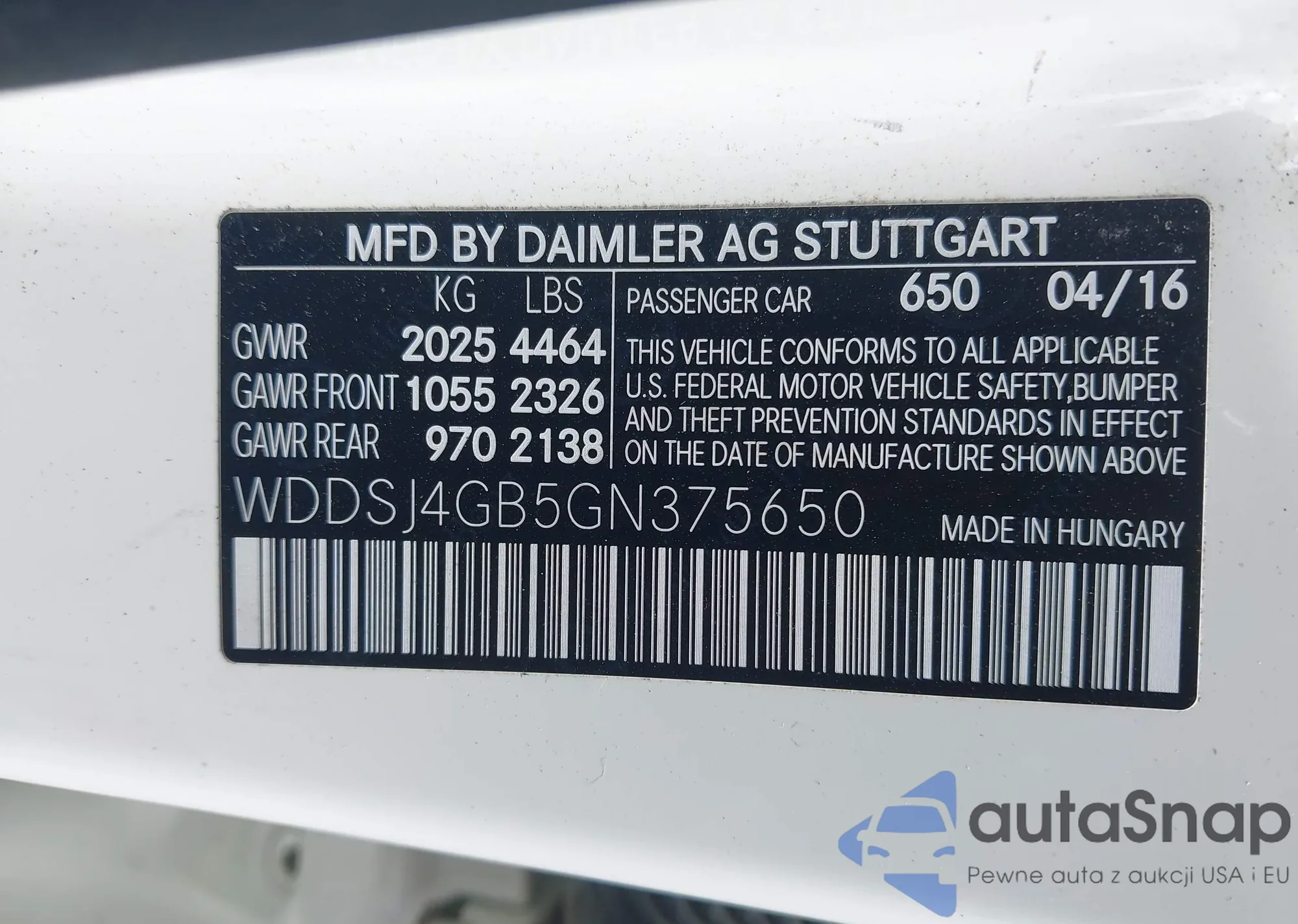 LOT: 42913014 VIN: WDDSJ4GB5GN375650