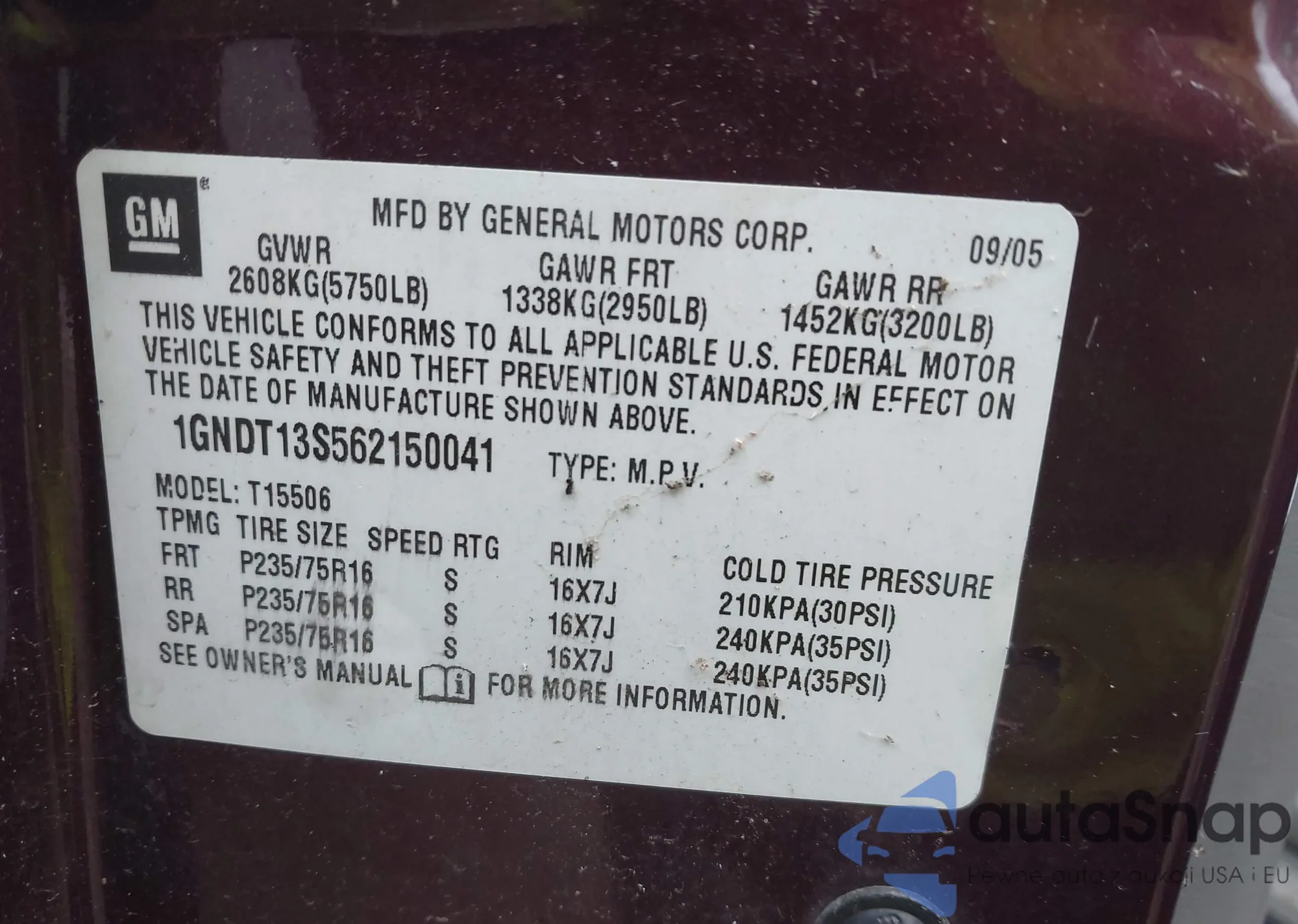 • VIN 1GNDT13S562150041