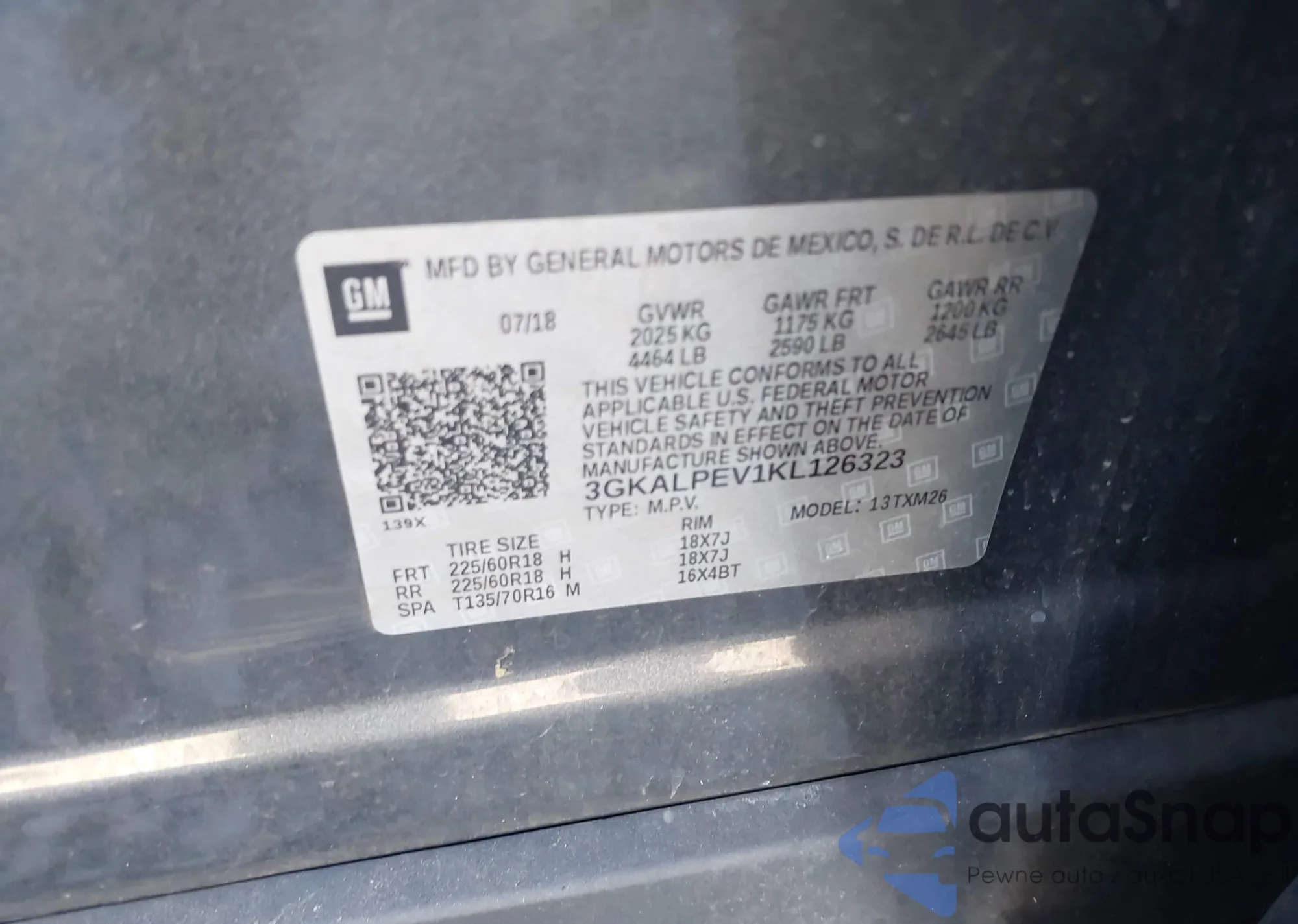 LOT: 43634114 VIN: 2GNALCEKXG1153210