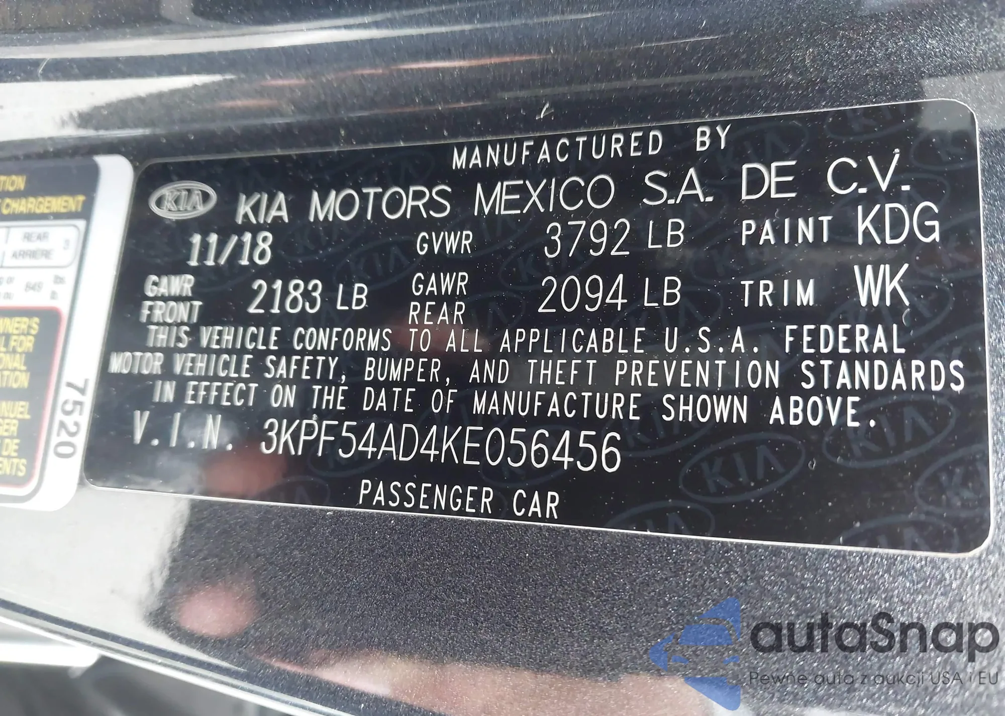 • VIN 3KPF54AD4KE056456