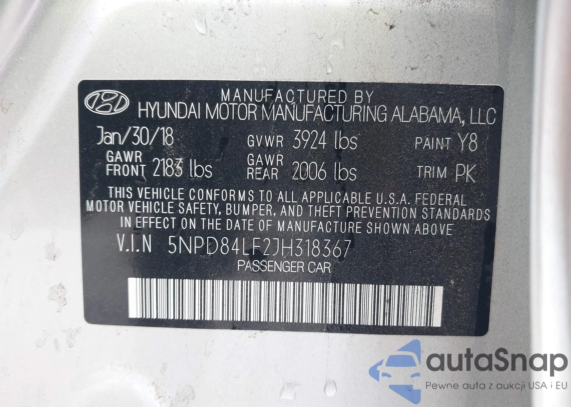 LOT: 43804073 VIN: 5NPD84LF2JH318367