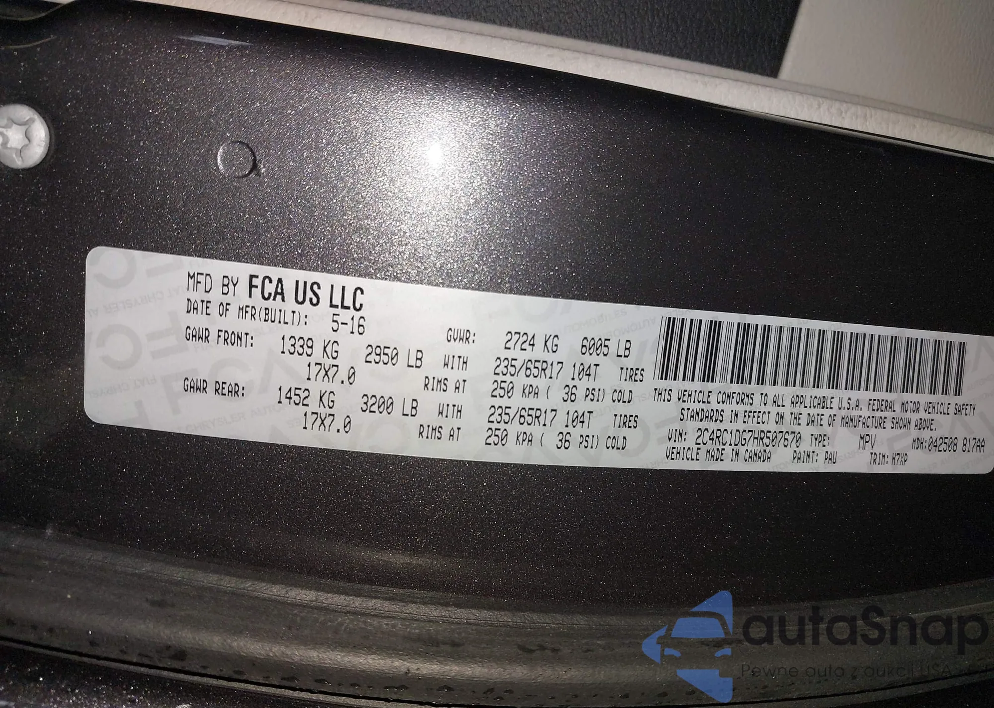 • VIN 2C4RC1DG7HR507670