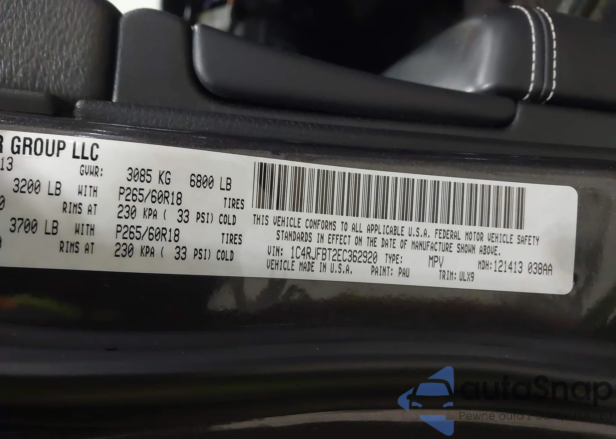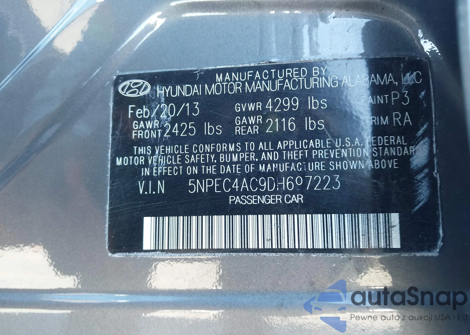 • VIN 5NPEC4AC9DH697223