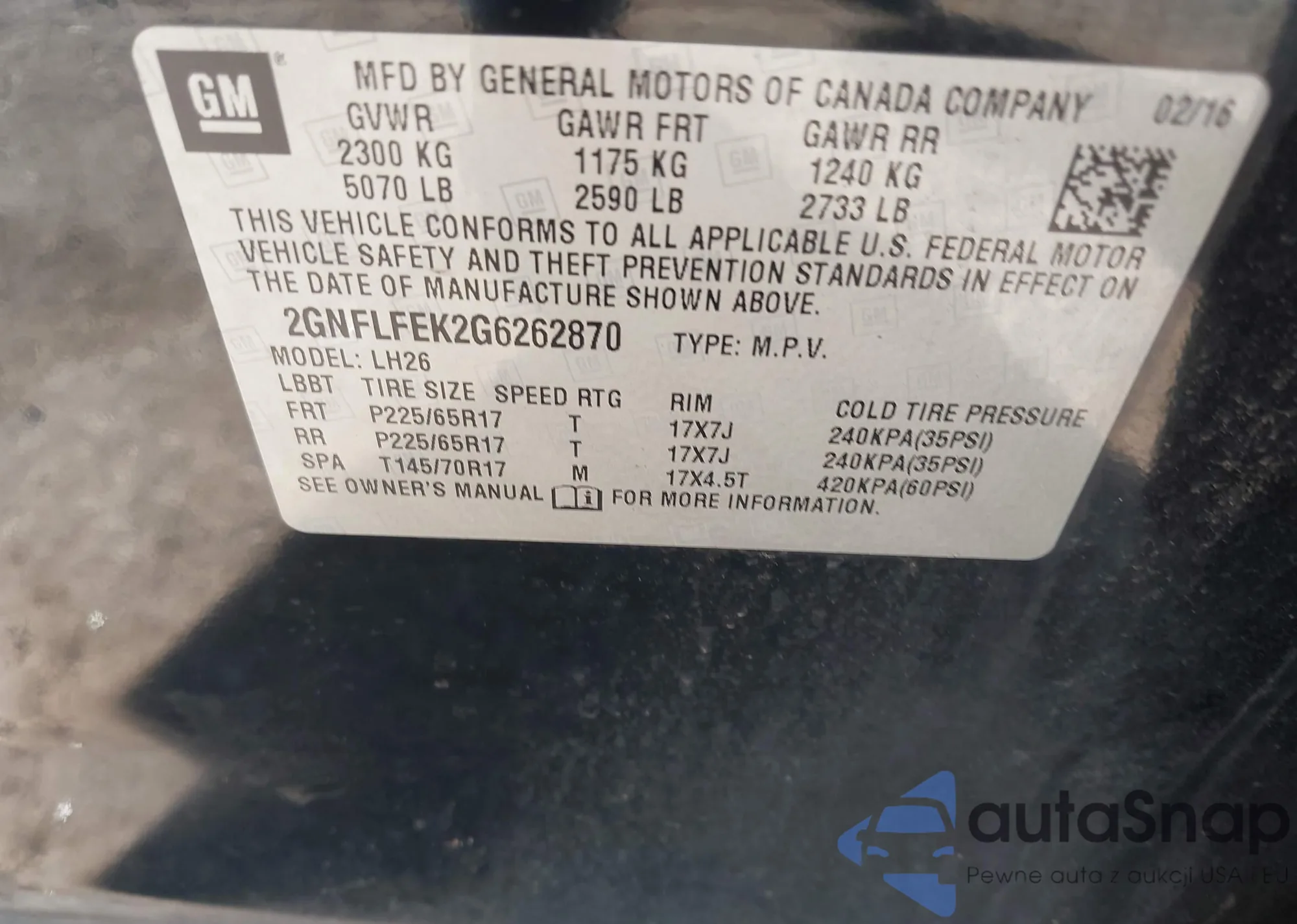 • VIN 2GNFLFEK2G6262870