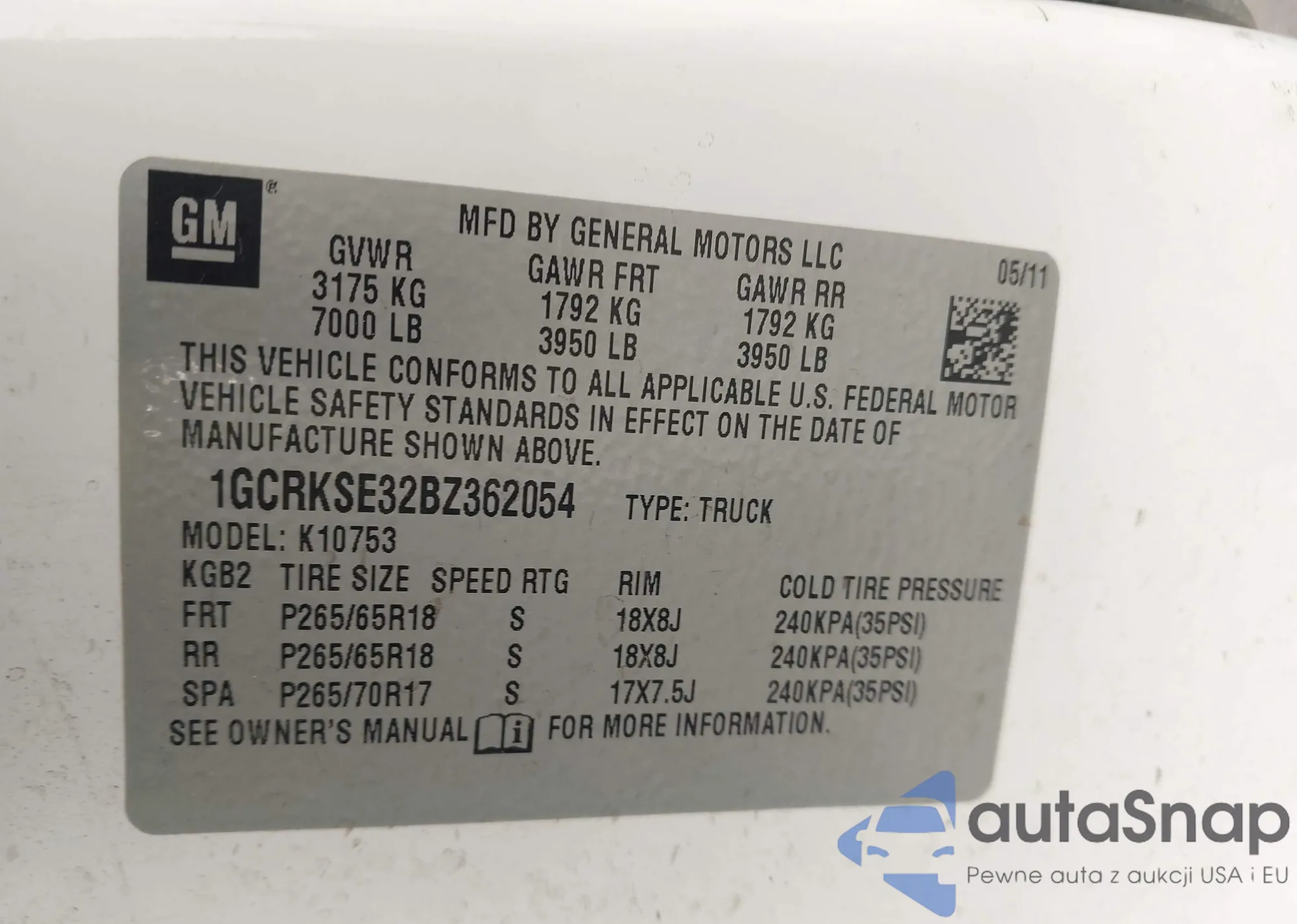 • VIN 1G1PE5SB5G7131012
