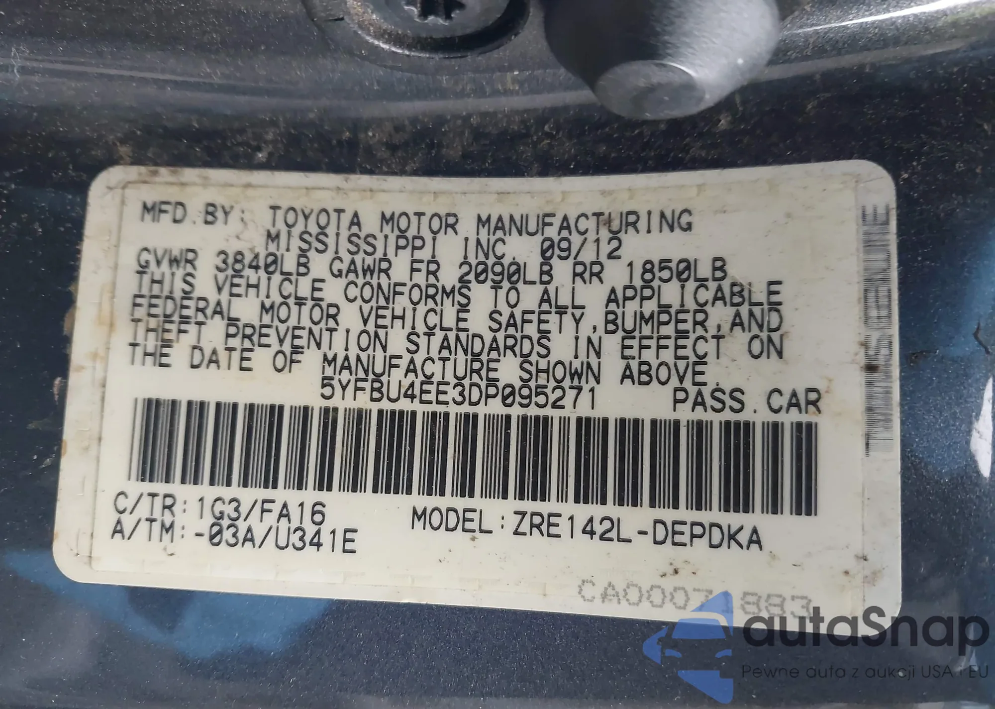 • VIN 4T1BF1FK6EU441732