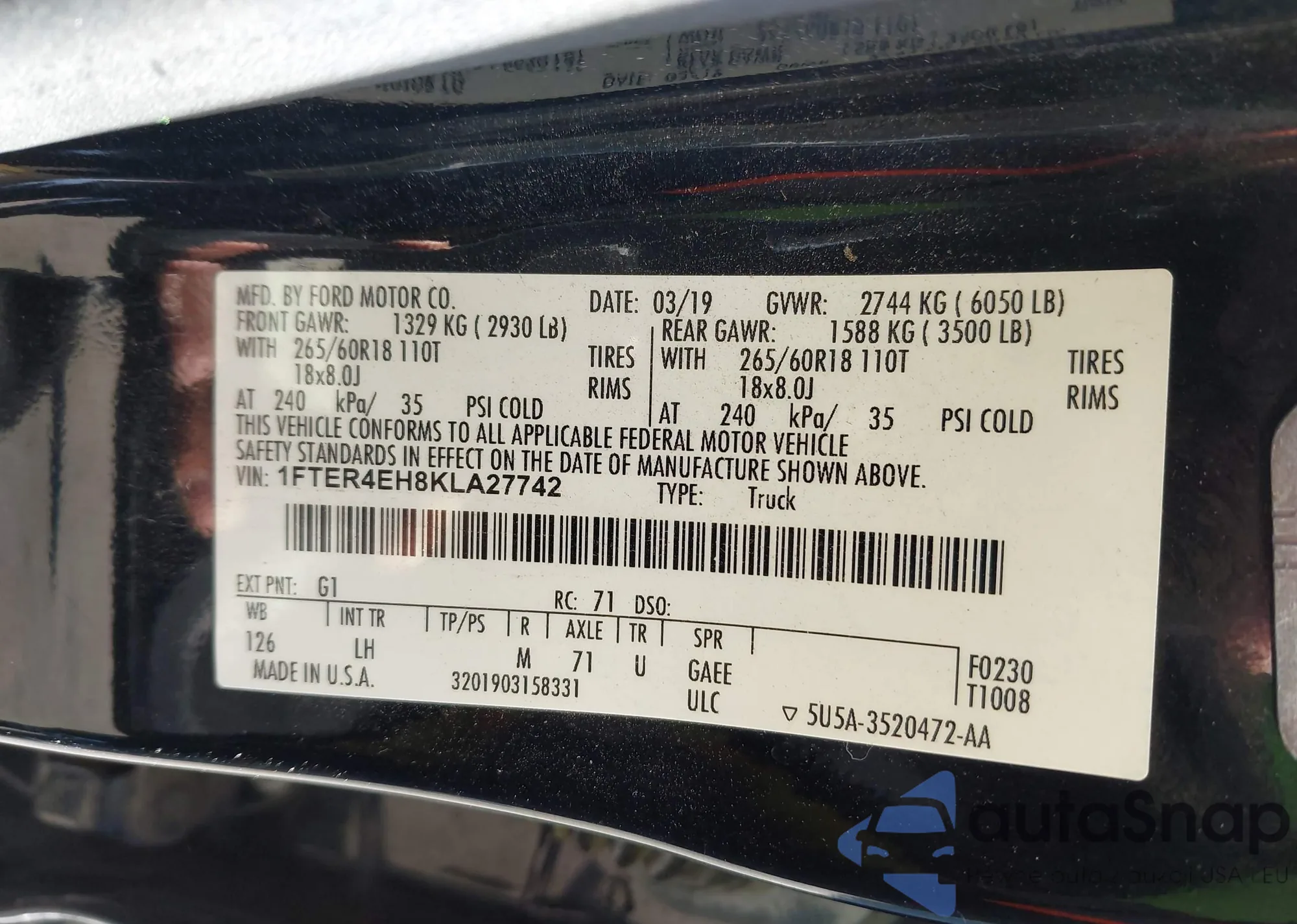 LOT: 43786147 VIN: 1FTER4EH8KLA27742