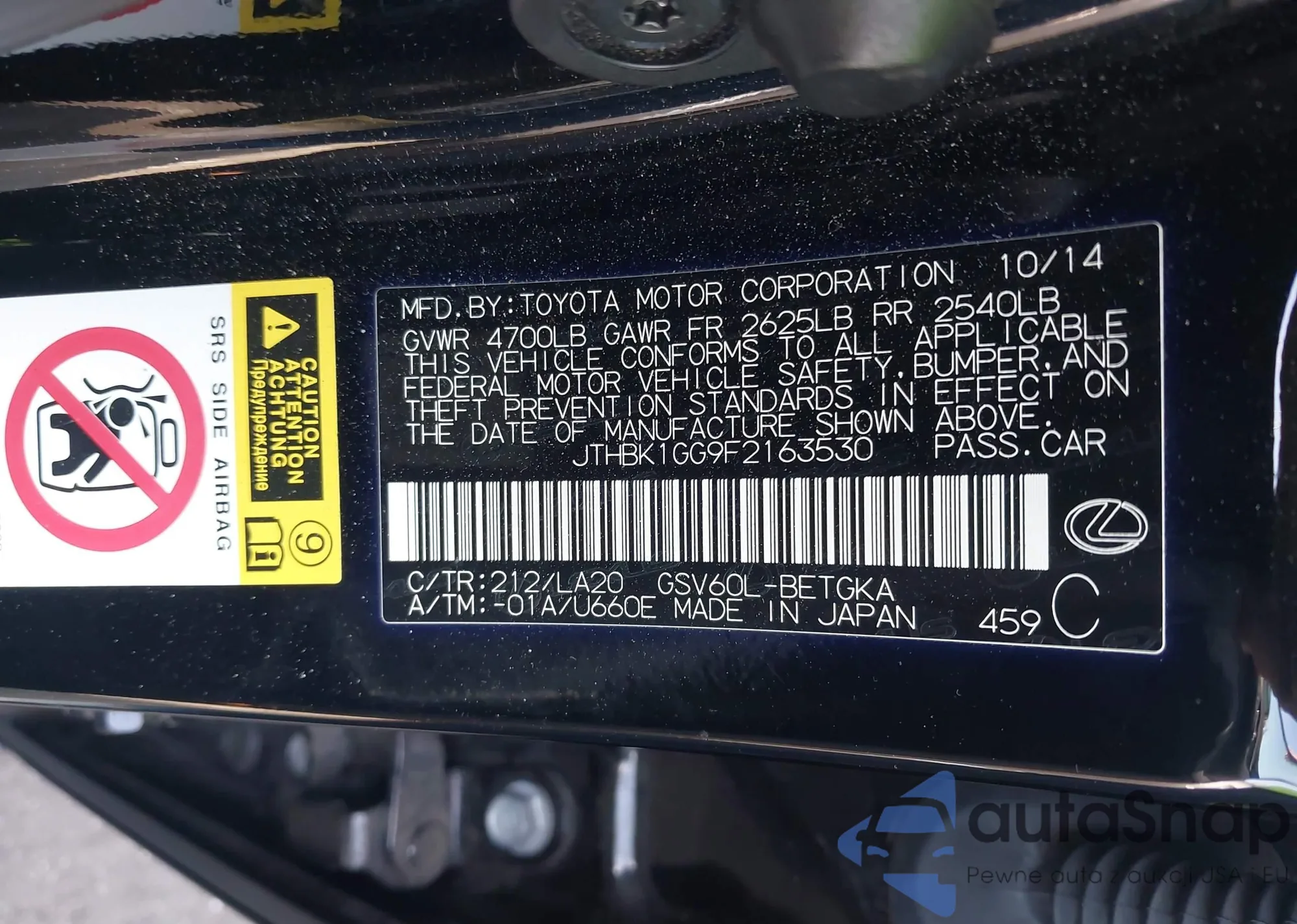 LOT: 43710360 VIN: 4T1BF1FK6EU441732