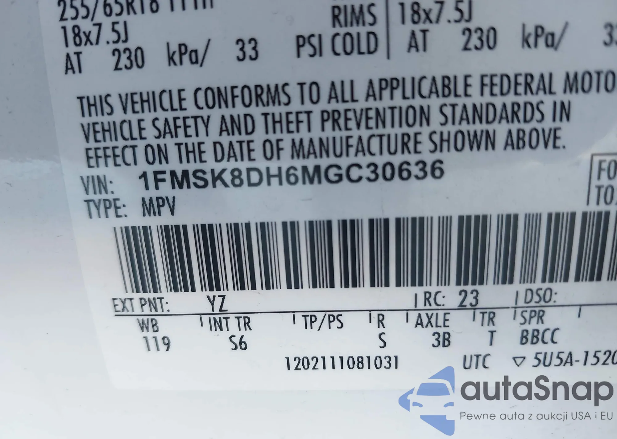 • VIN 1FMCU0GNXRUA13228