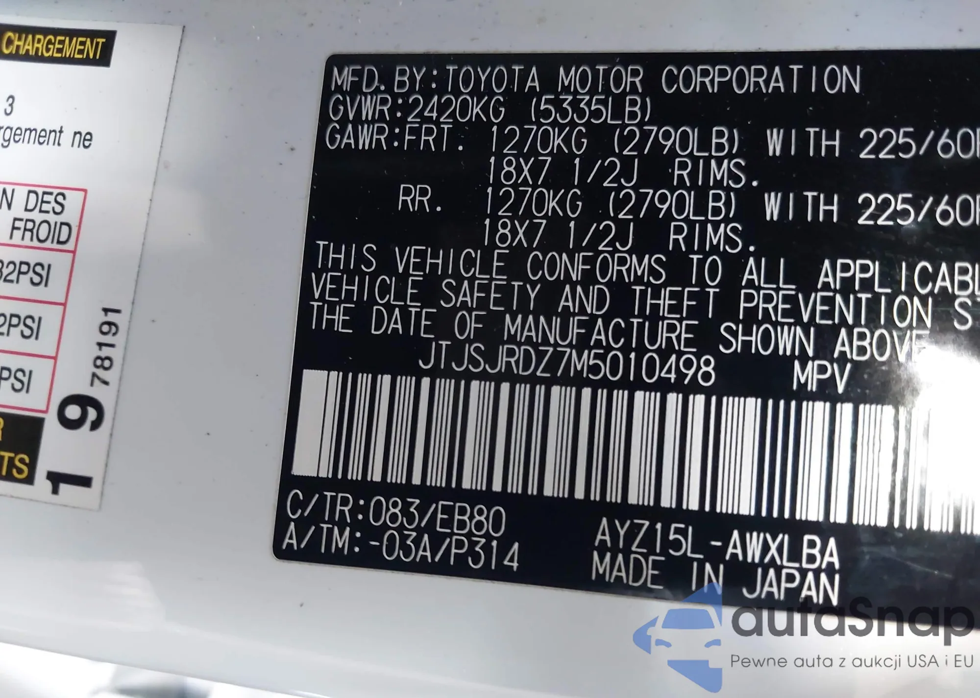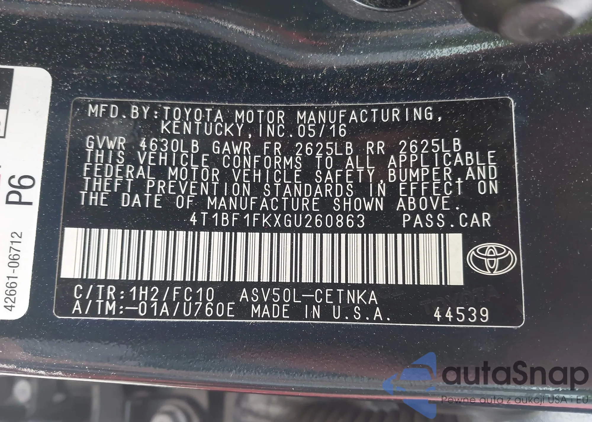 • VIN 4T1BF3EK9BU621439