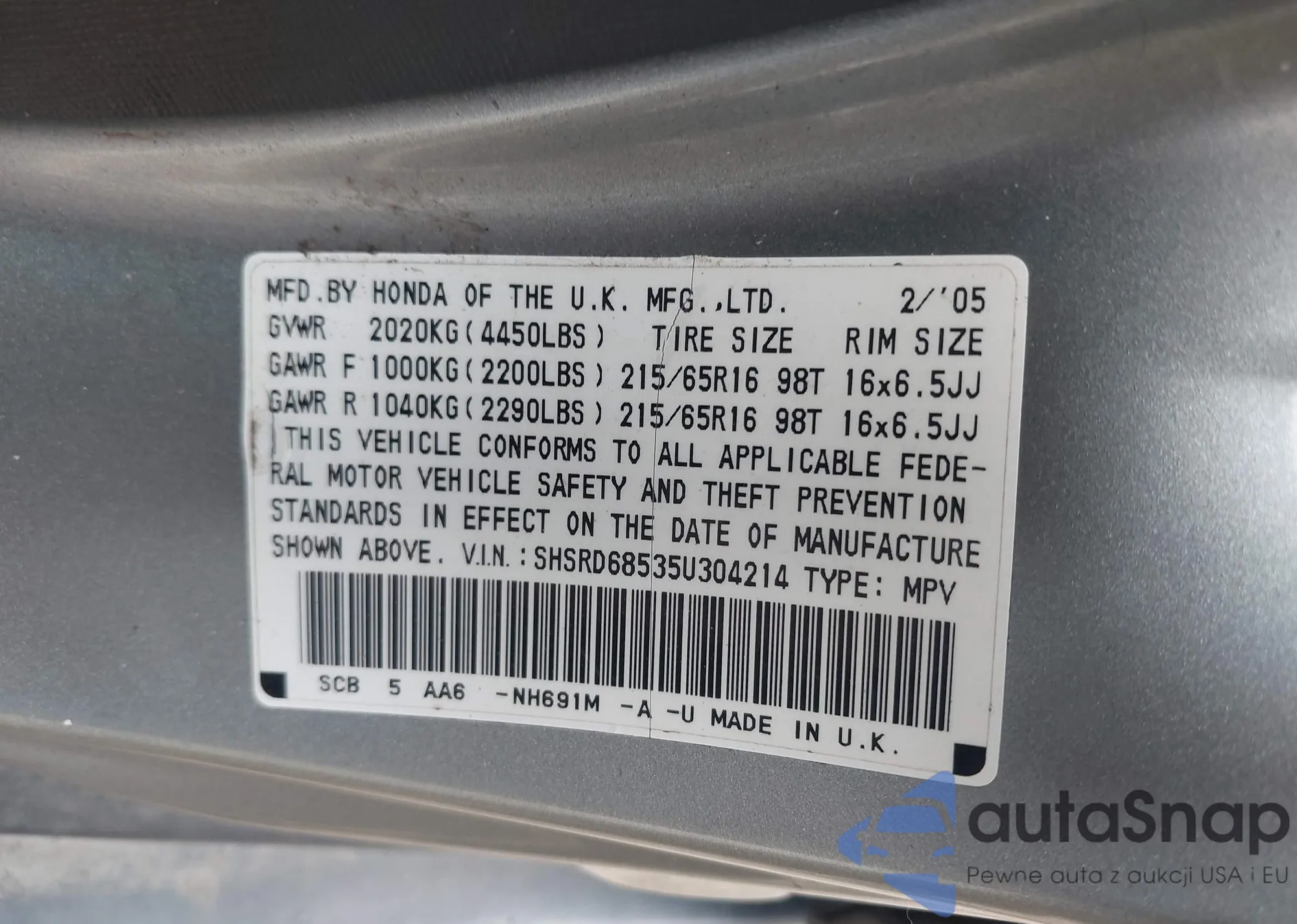 • VIN 5NMS6DAJ5MH314321