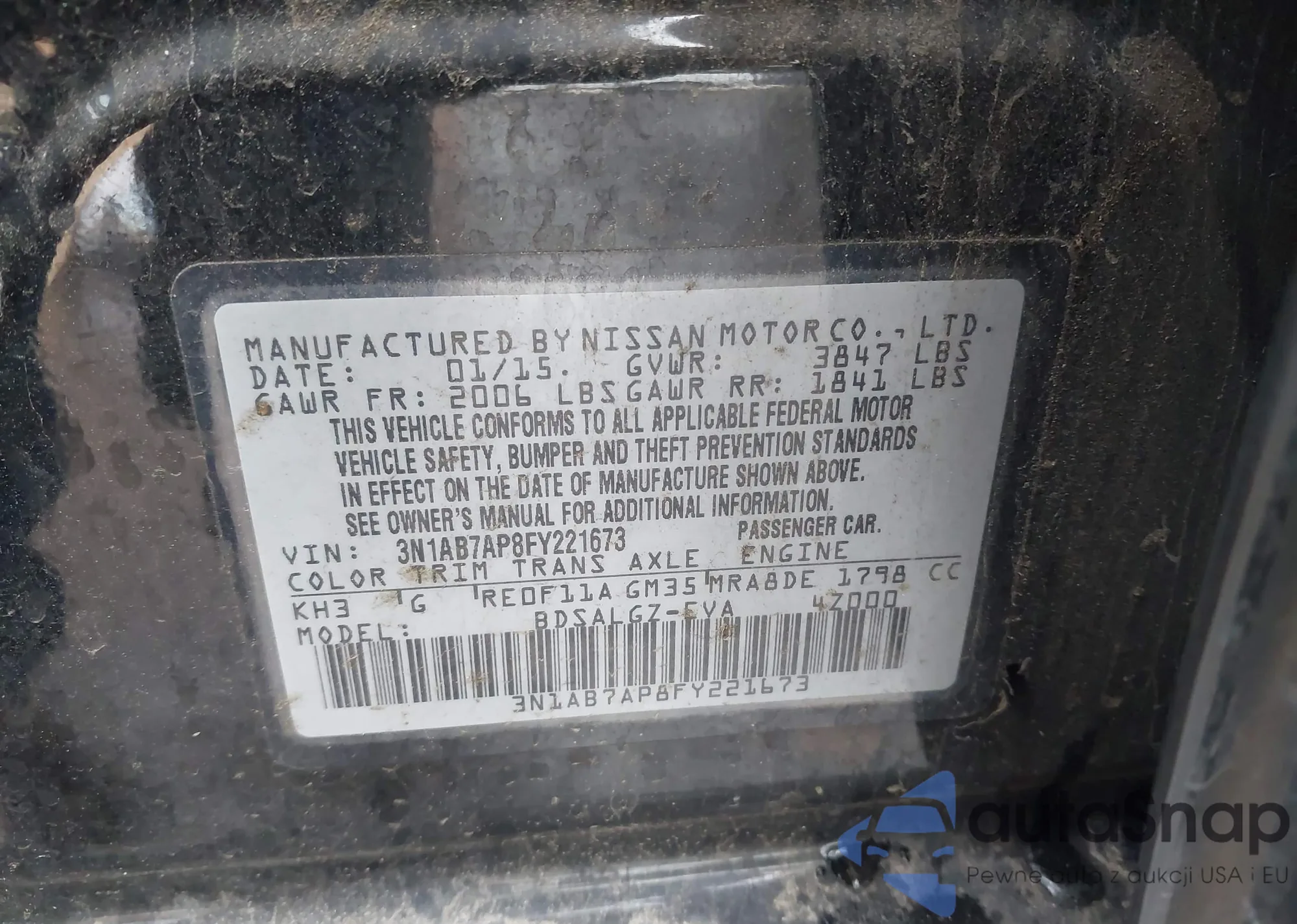 • VIN 3N1AB7AP8FY221673