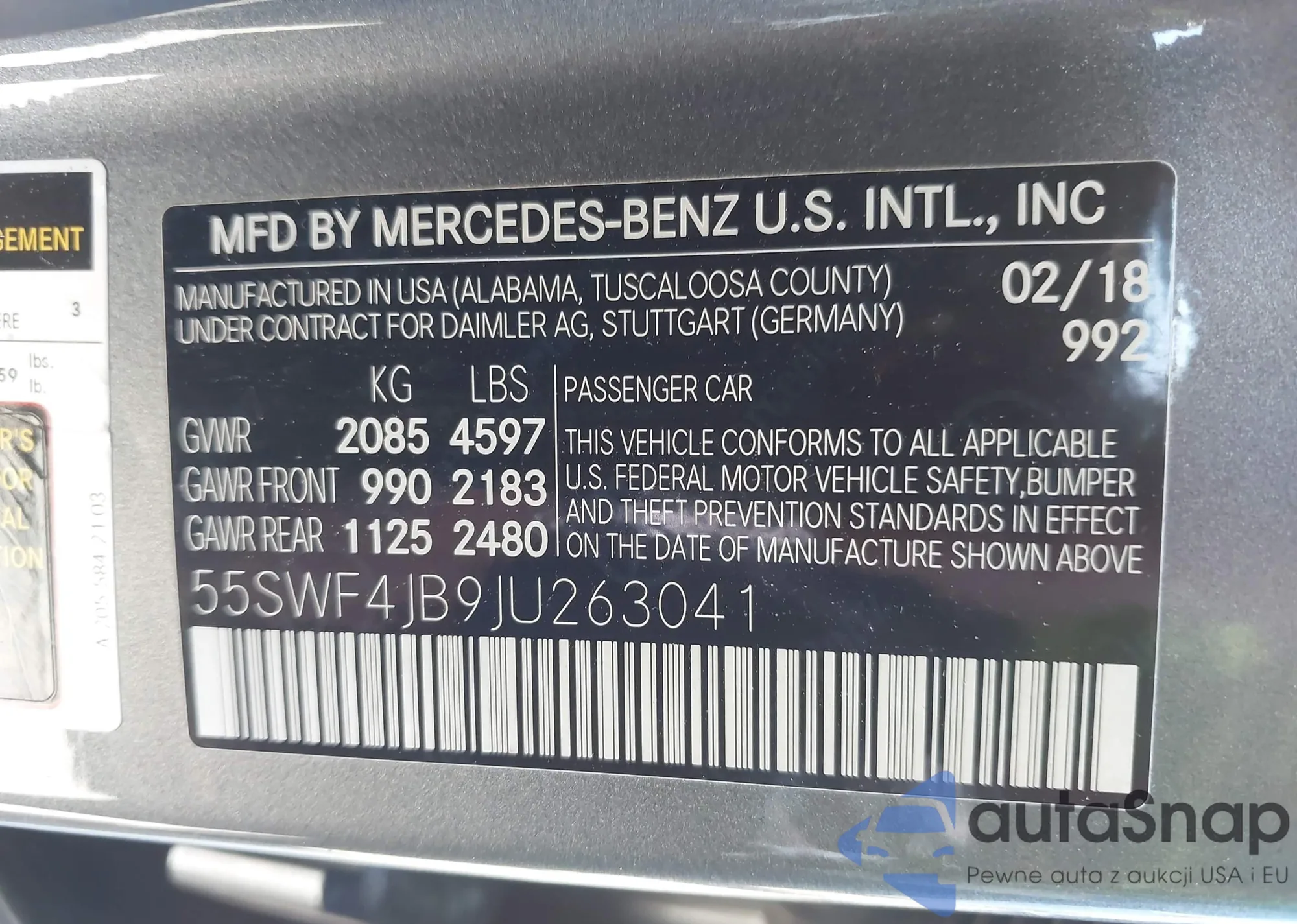 LOT: 43741088 VIN: 5XXGT4L33JG261528