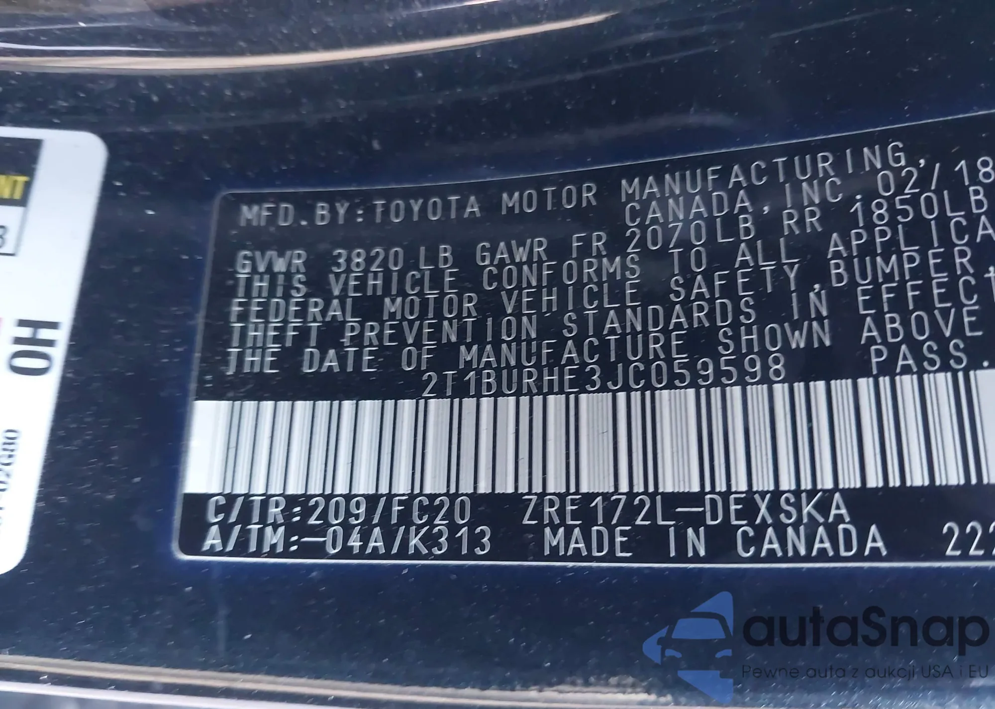 LOT: 43838325 VIN: 4T1BK1EB4DU064801