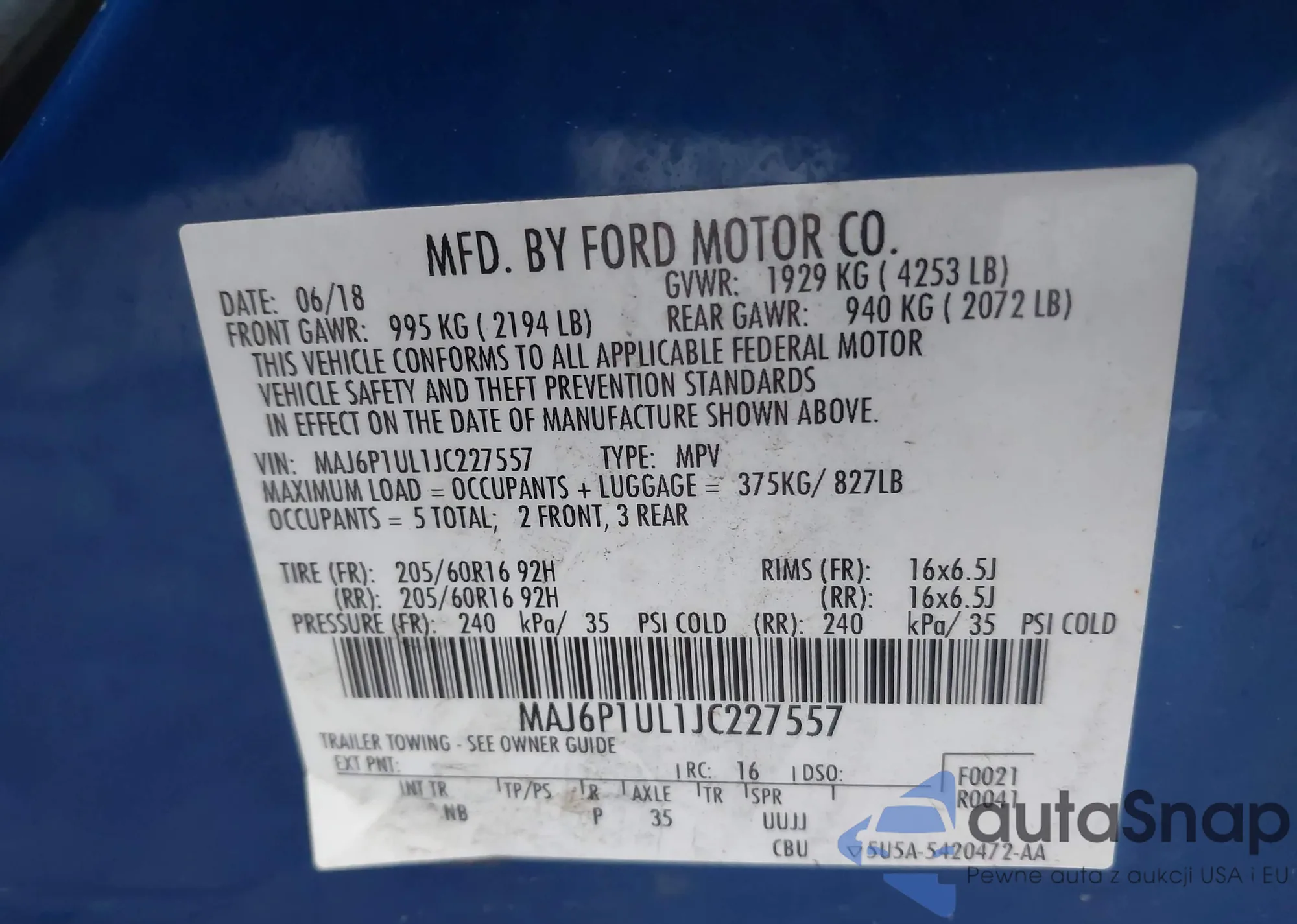• VIN 1FTEW1CP5HFB18962