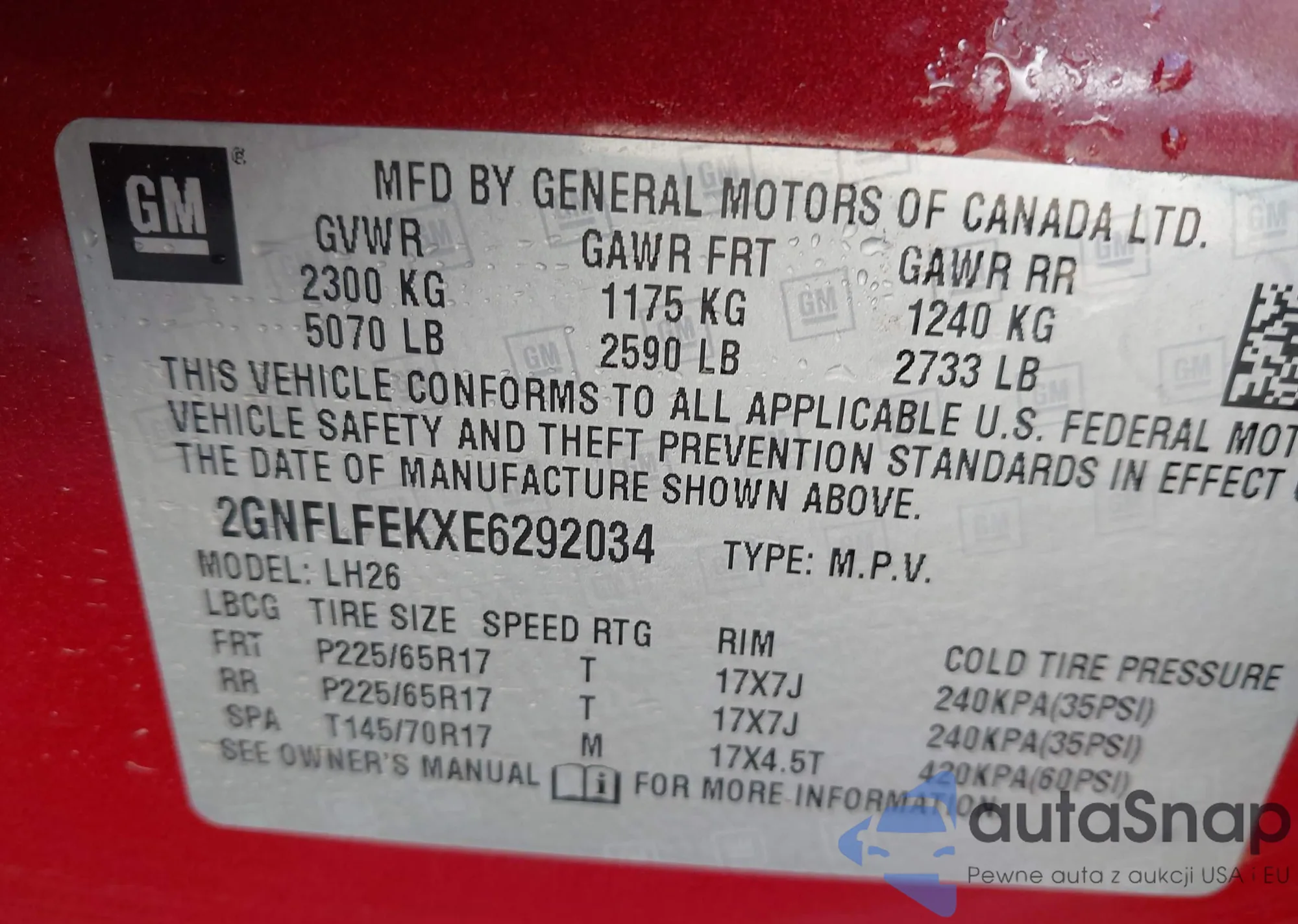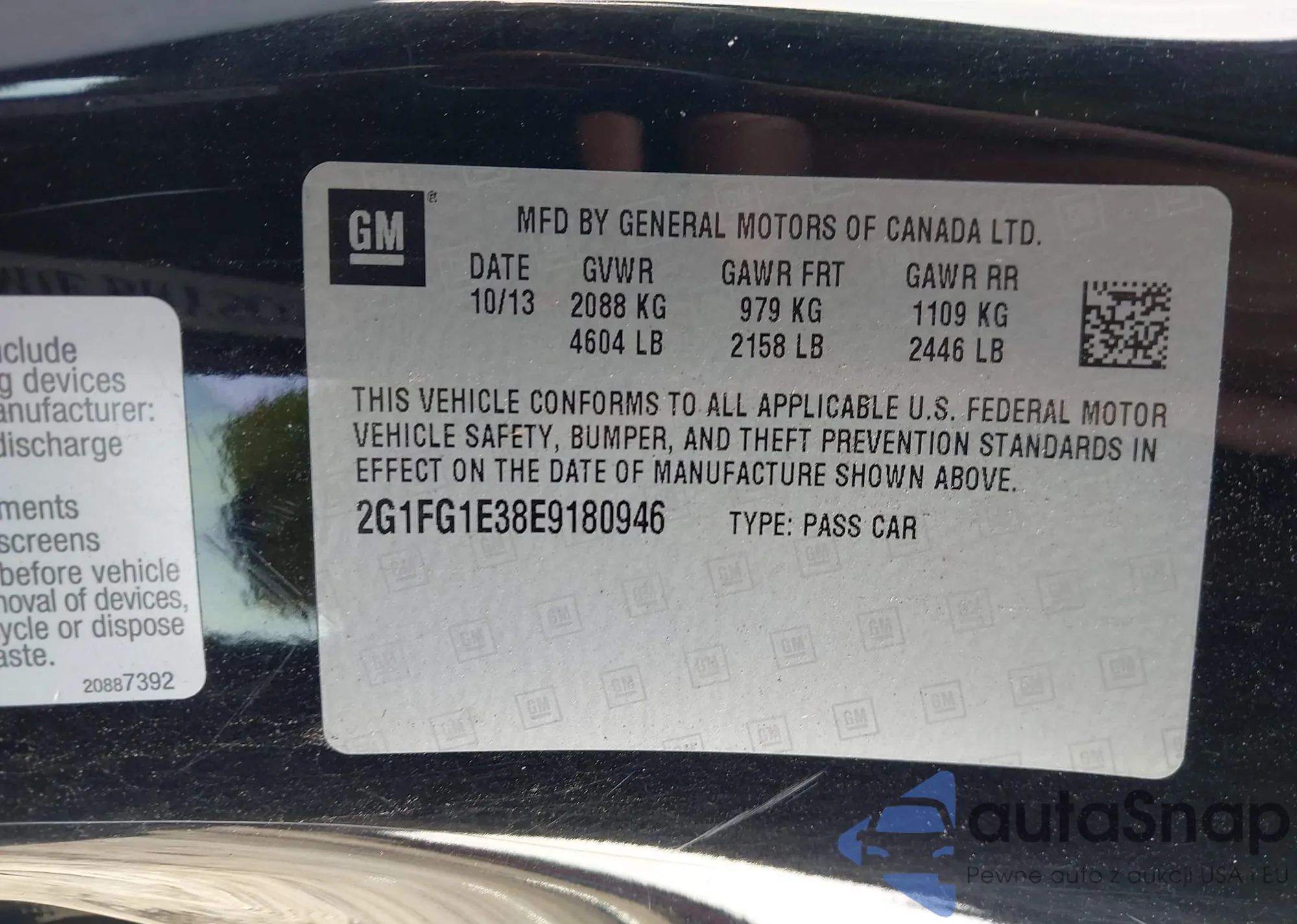 • VIN 2G1FG1E38E9180946