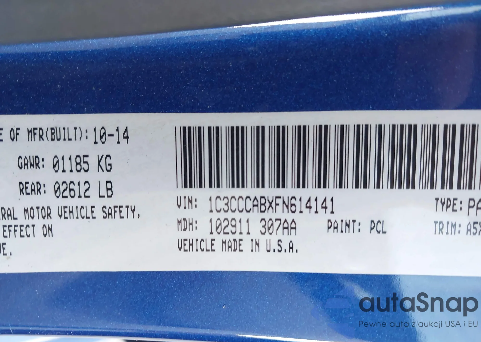 LOT: 43723503 VIN: 1C3CCCABXFN614141