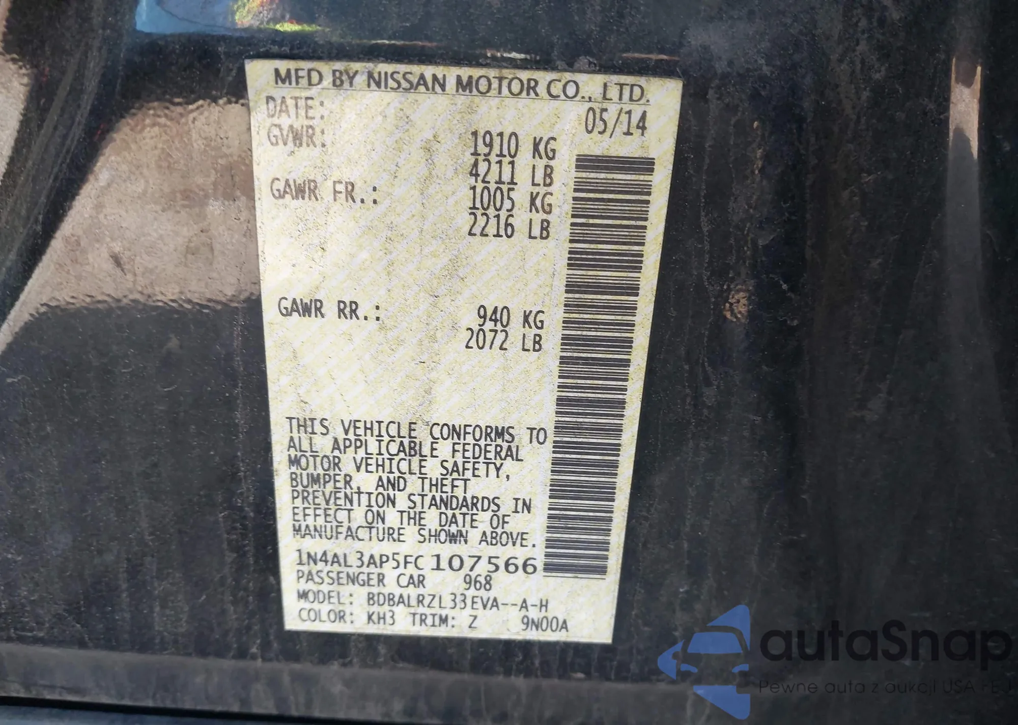 • VIN 5N1AT3BA9MC672335