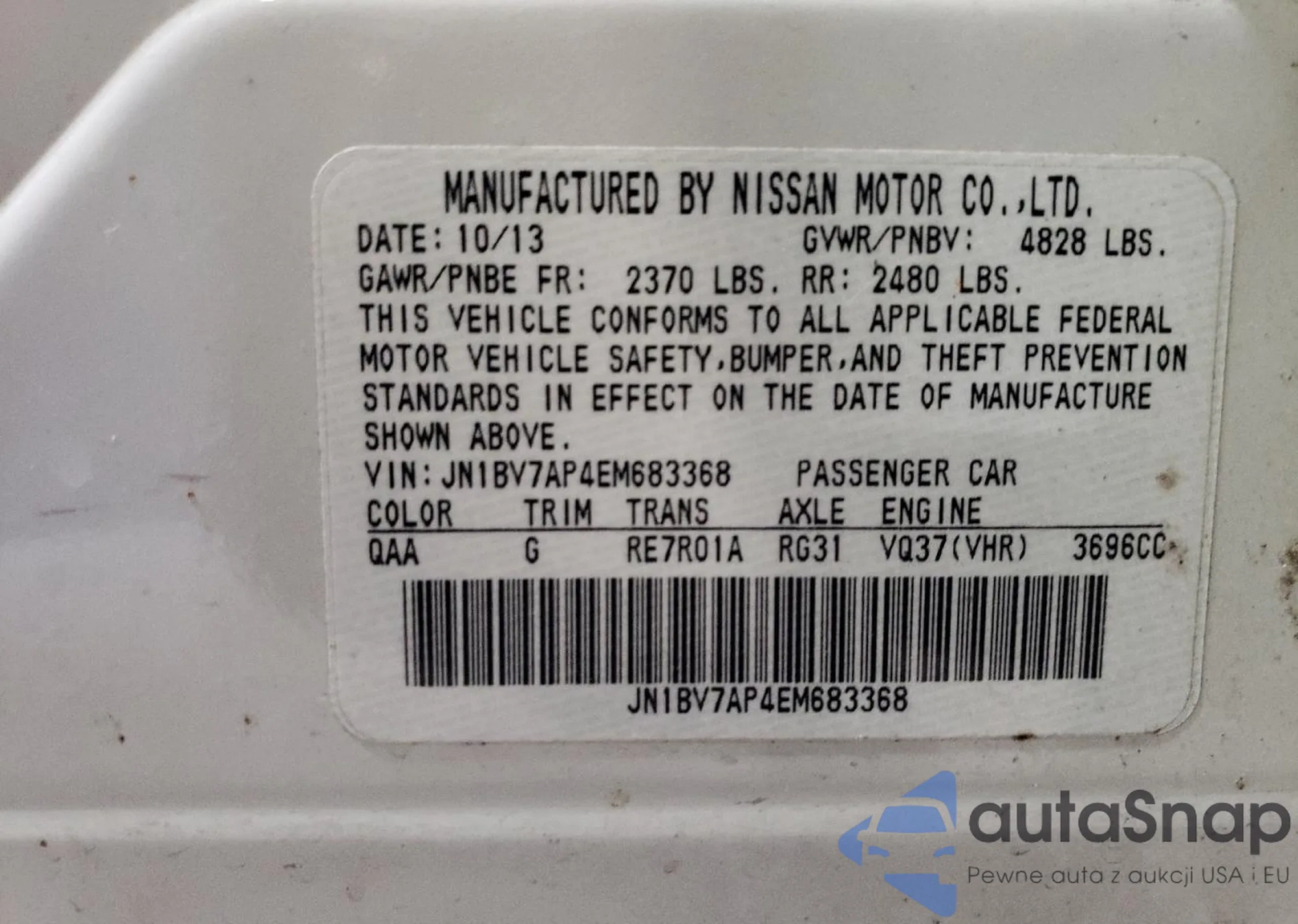 LOT: 64289235 VIN: JN1BV7AP4EM683368