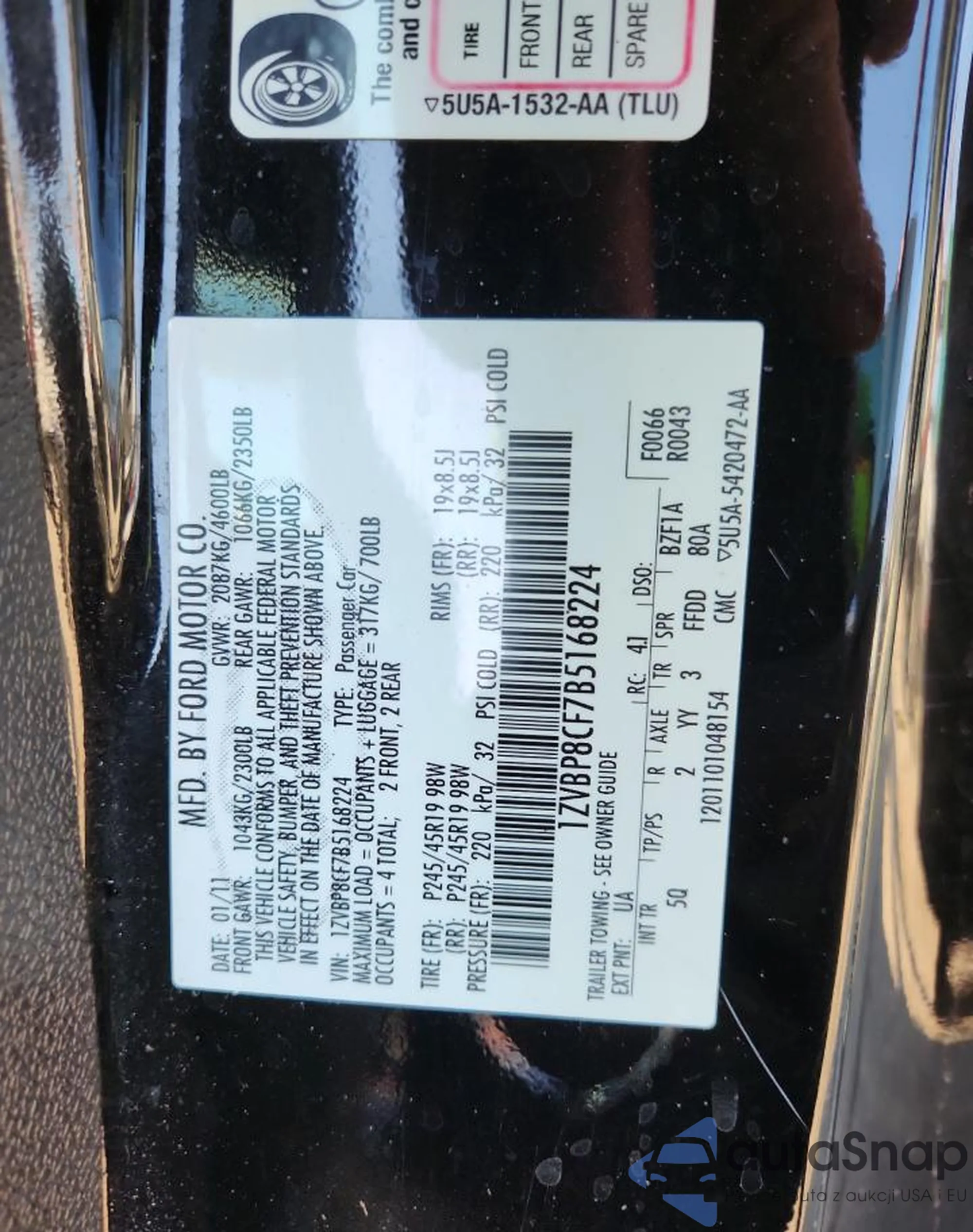 • VIN 1ZVBP8CF7B5168224