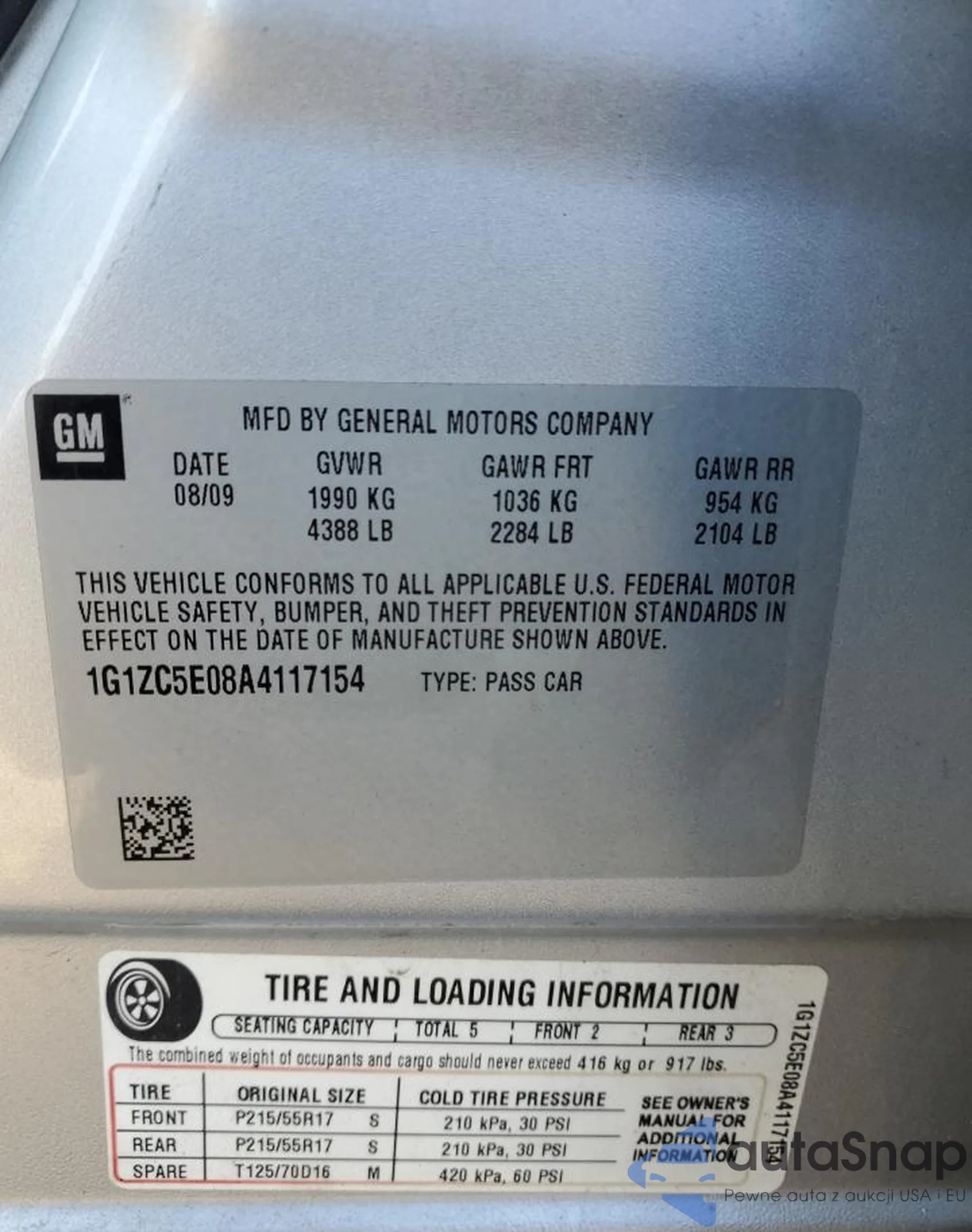 • VIN 1G1ZC5E08A4117154