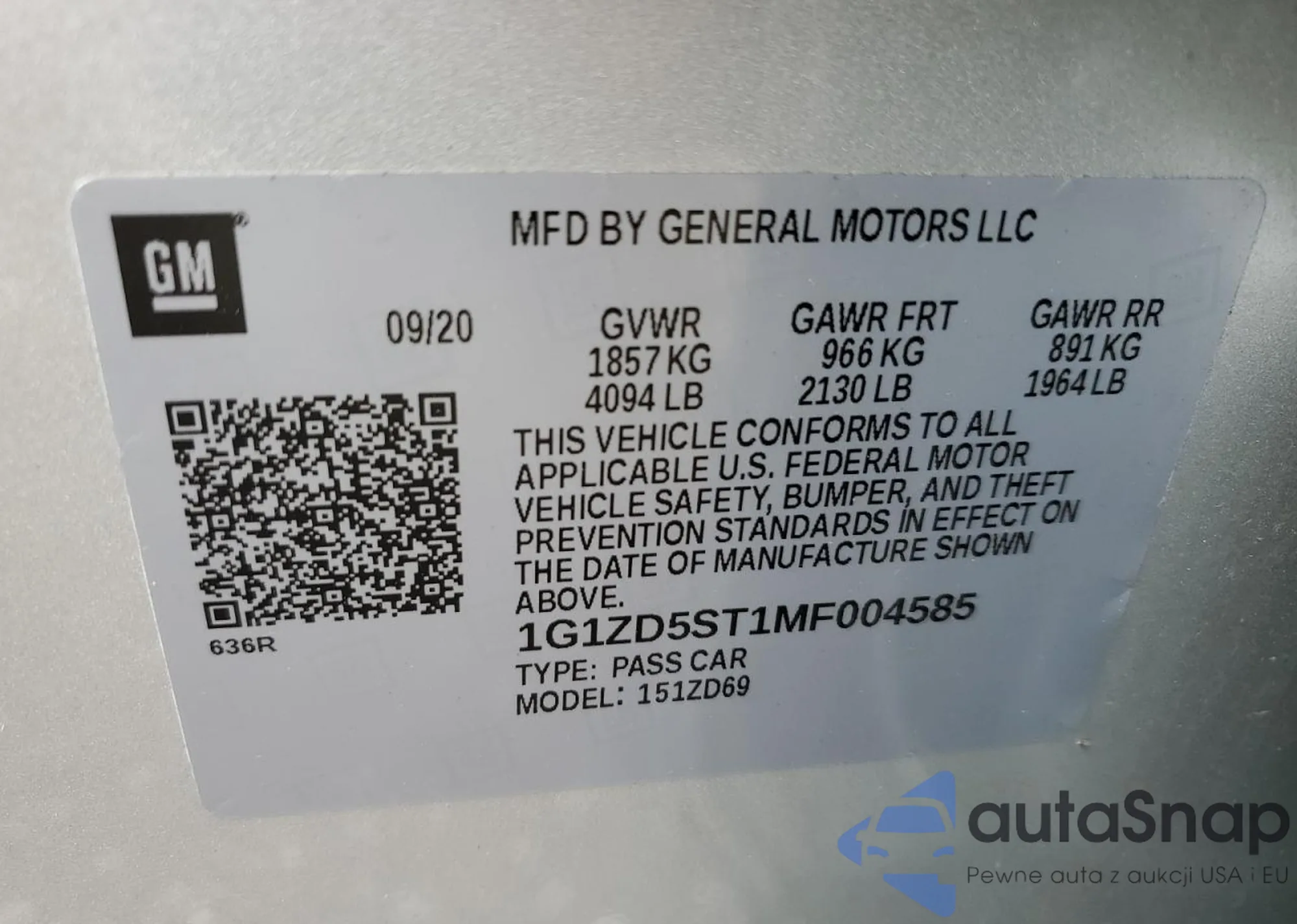 LOT: 81545265 VIN: 1G1ZD5ST1MF004585