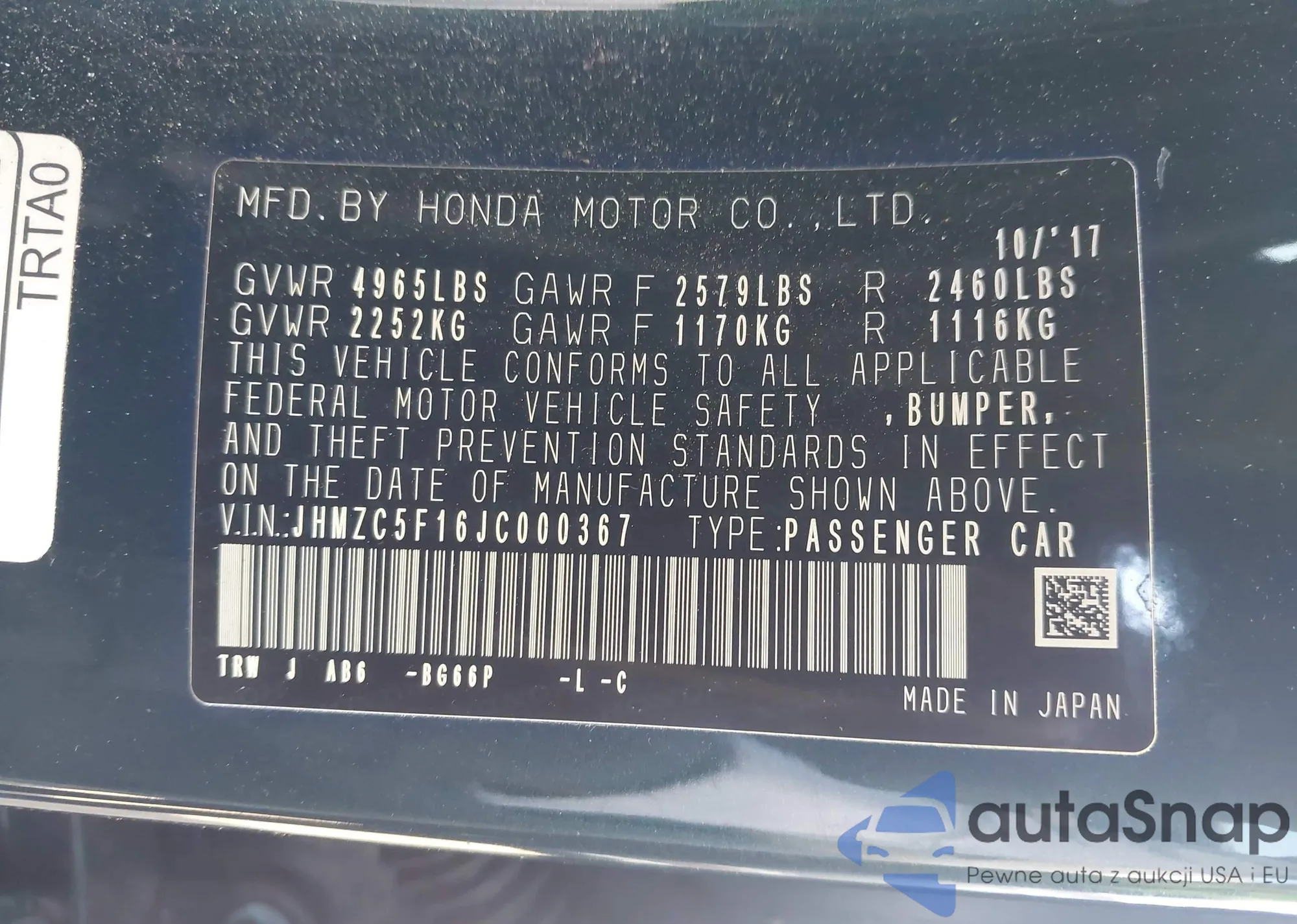 LOT: 43780722 VIN: 2HGFG12638H545373