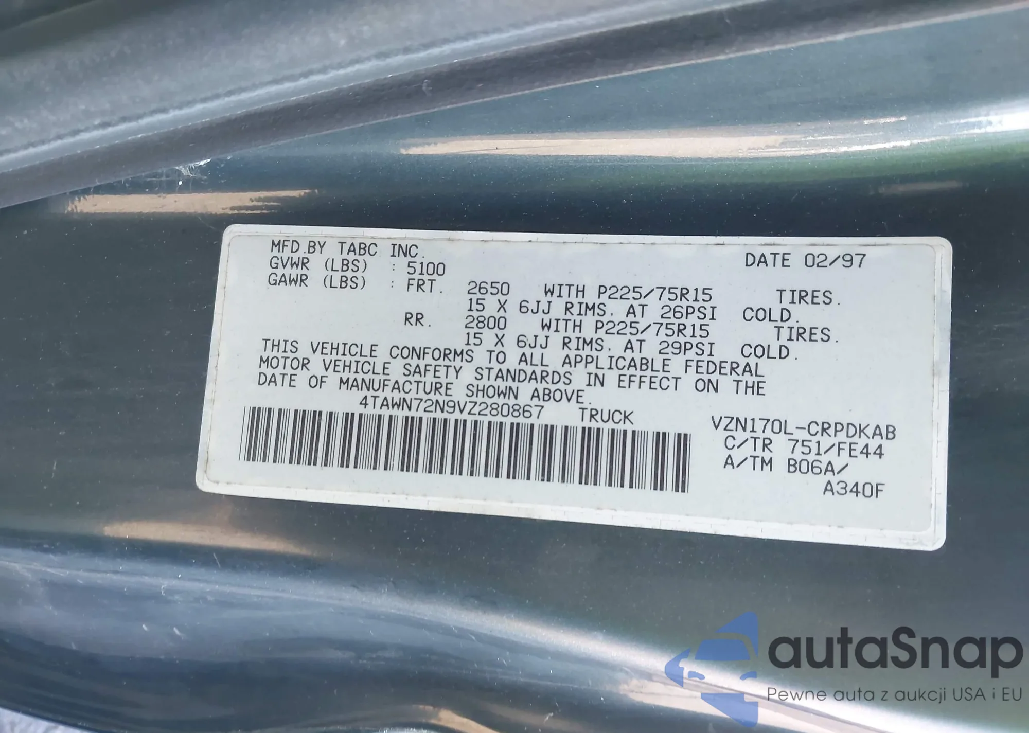 • VIN 5TBRT34171S210783