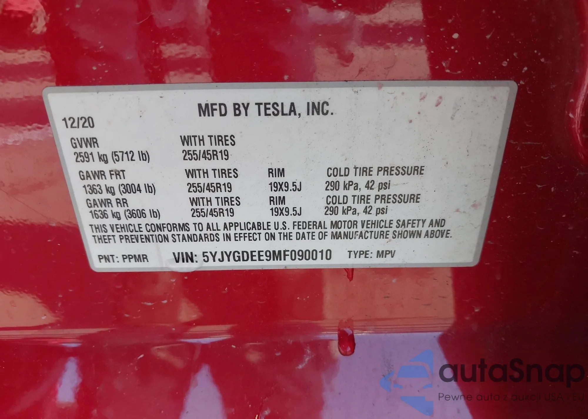 LOT: 43795712 VIN: 5YJYGDEE9MF090010
