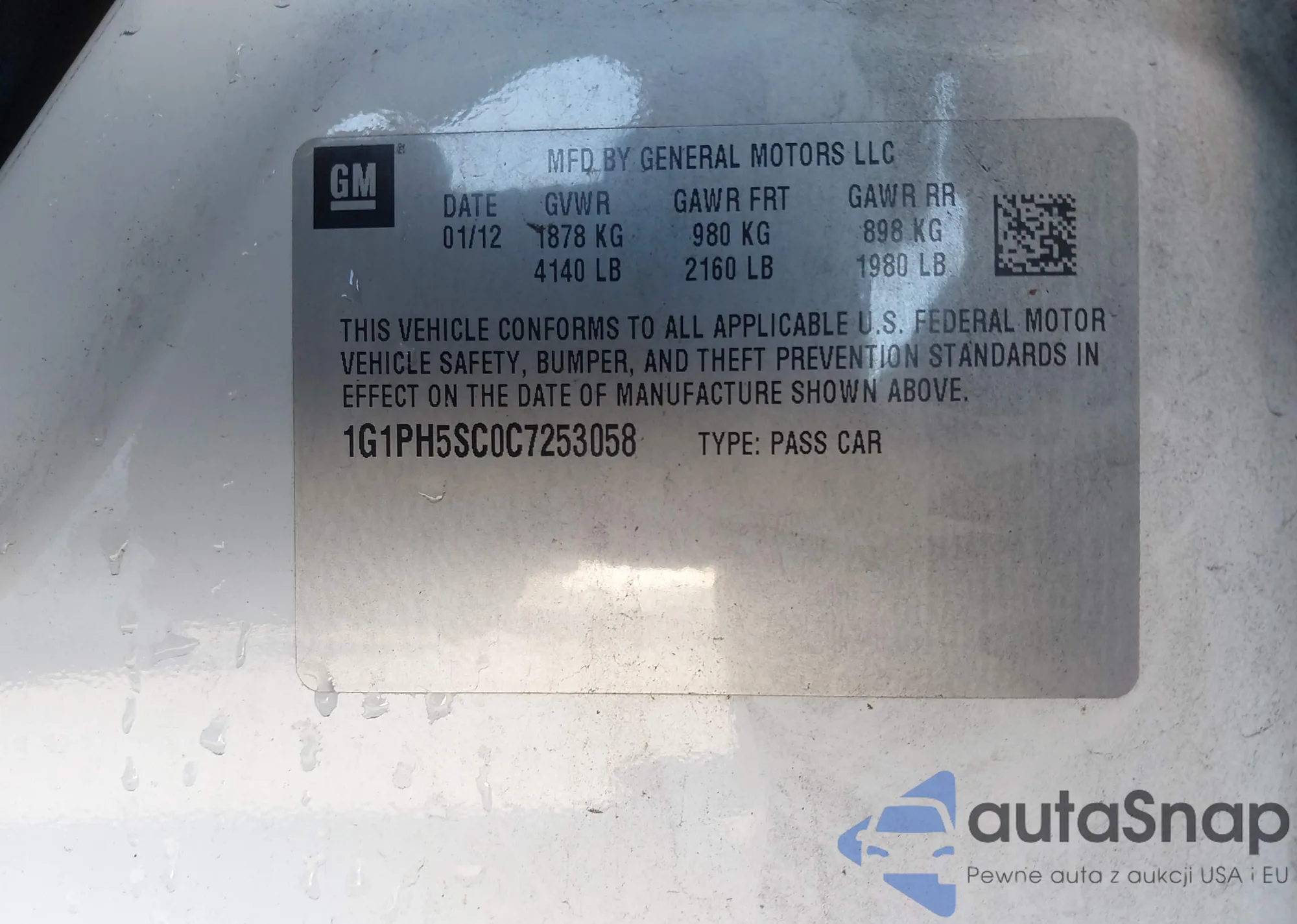 LOT: 43885599 VIN: 1G1PH5SC0C7253058