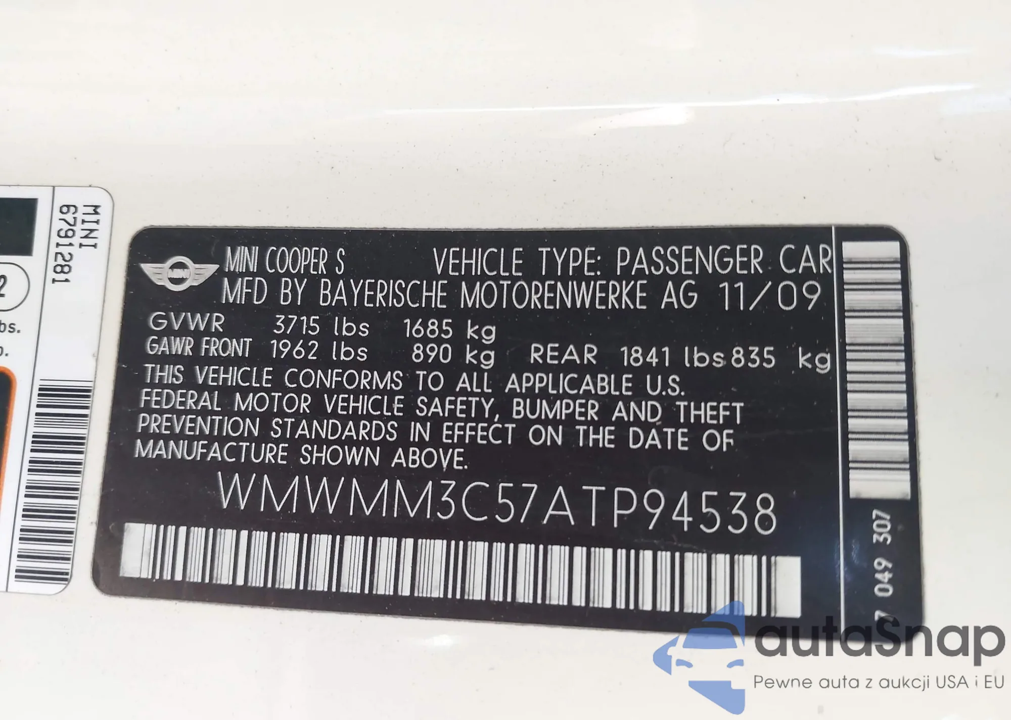 • VIN WMWMM3C57ATP94538