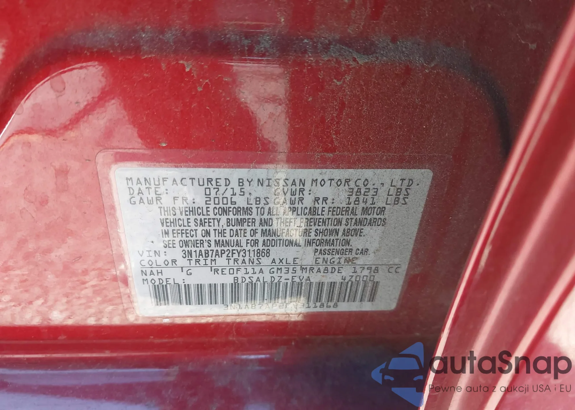 LOT: 43805671 VIN: 3N1AB7AP2FY311868