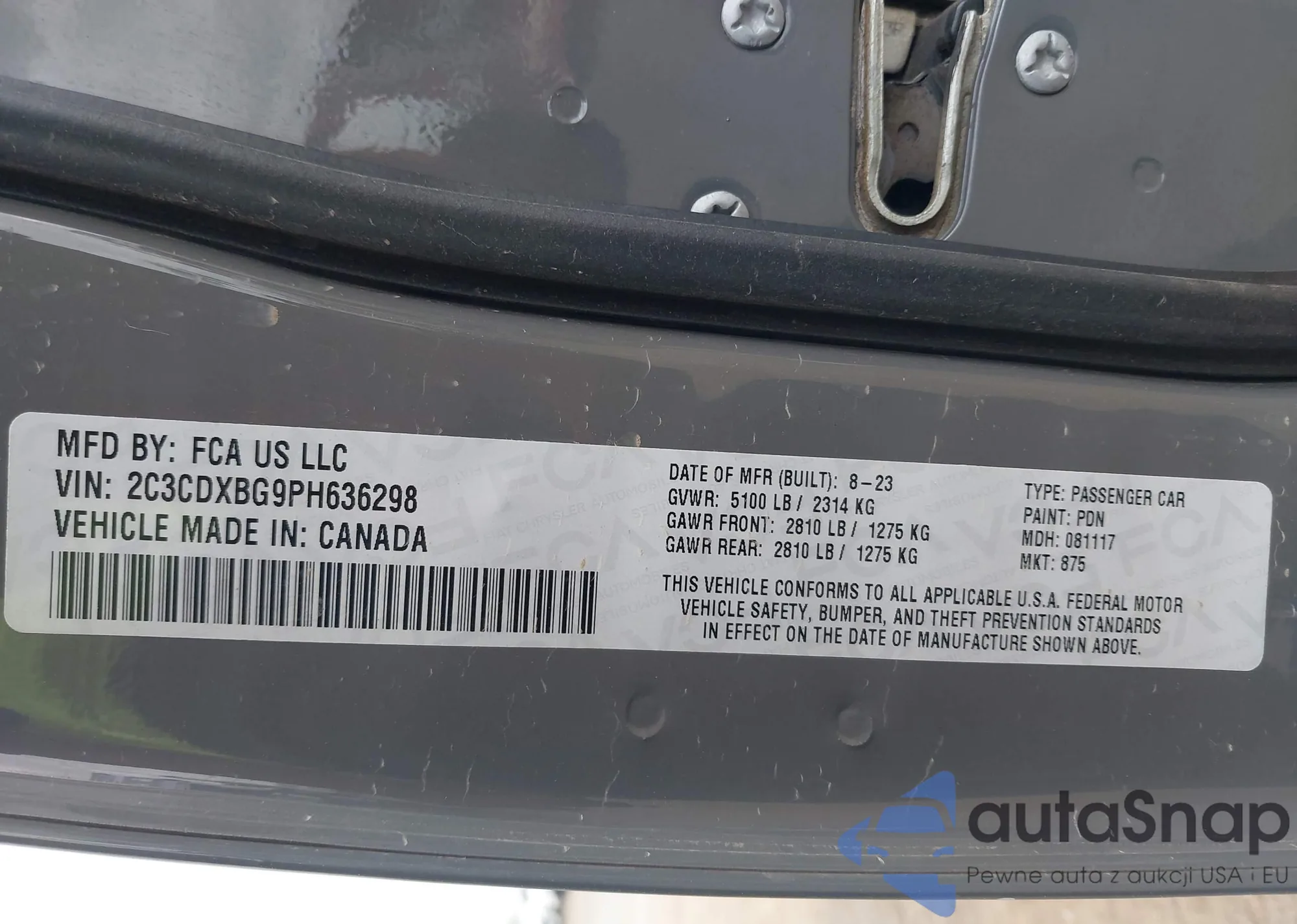 • VIN 2C3CDXBG9PH636298