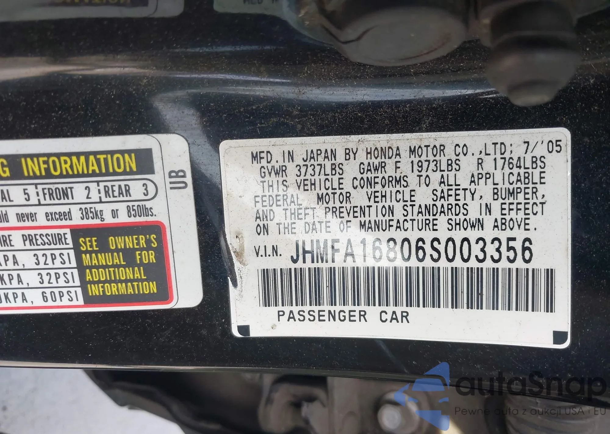 • VIN JHMFA16806S003356