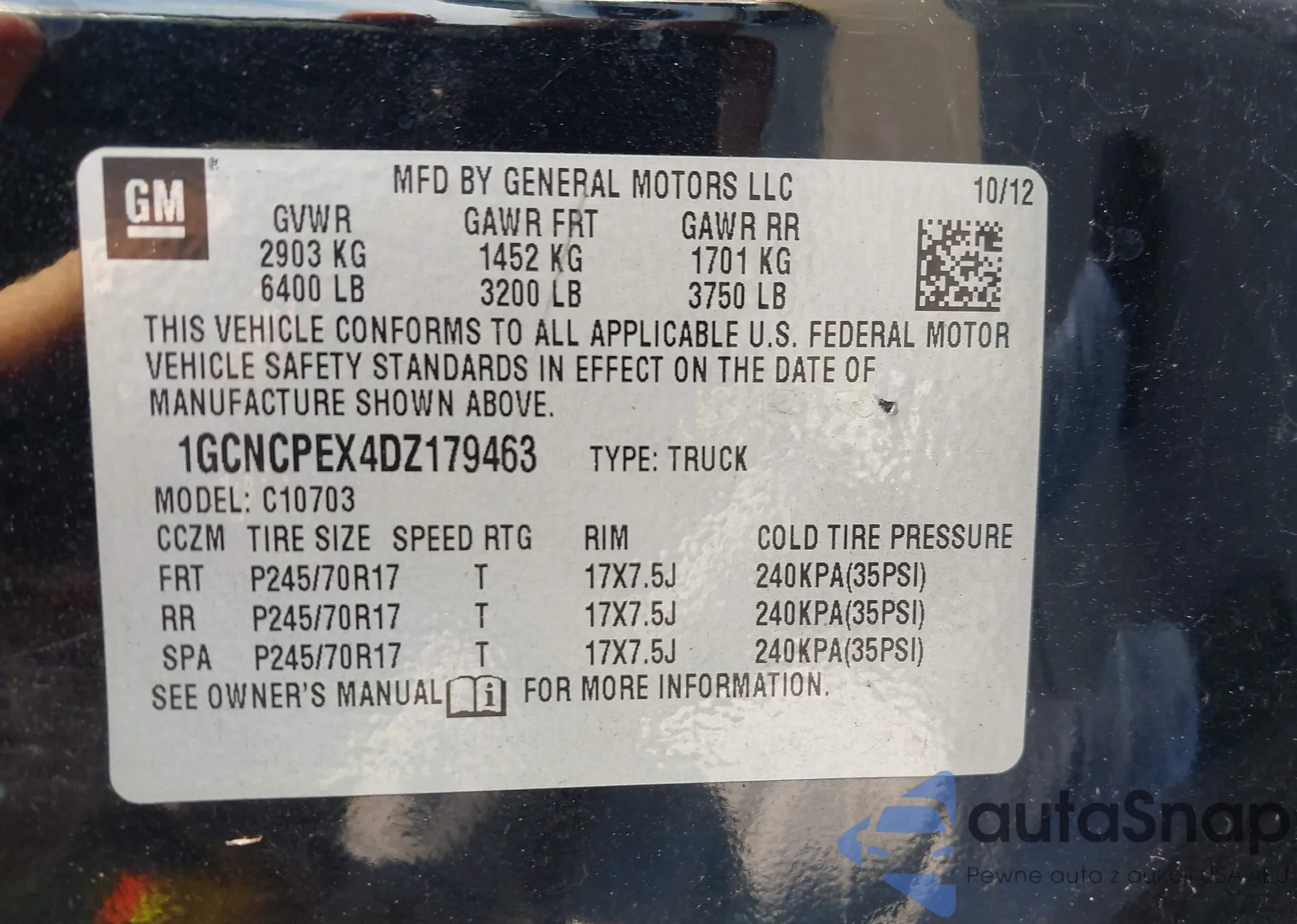 • VIN 1GCNCPEX4DZ179463