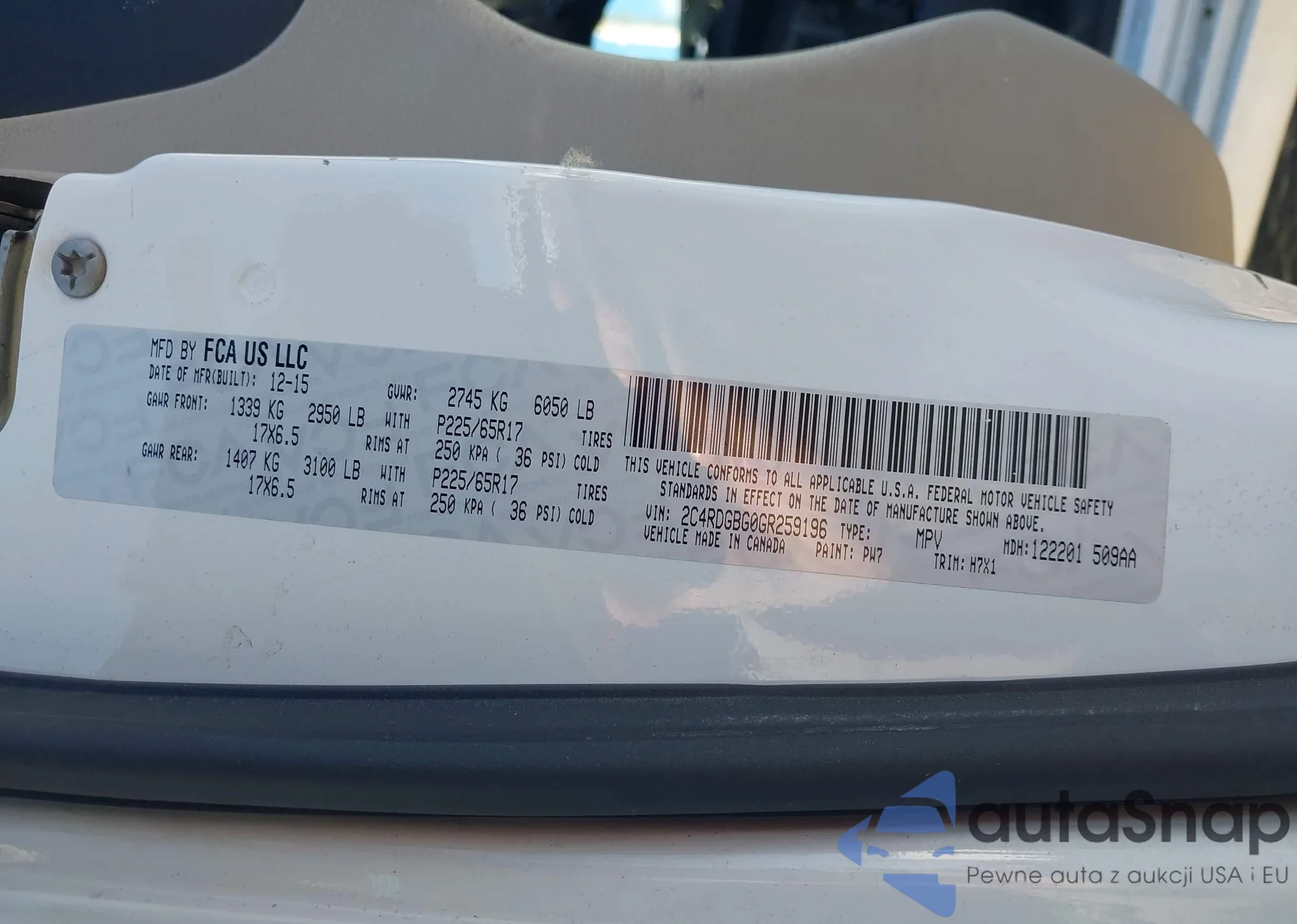 • VIN 1C4RJEAG3FC721501