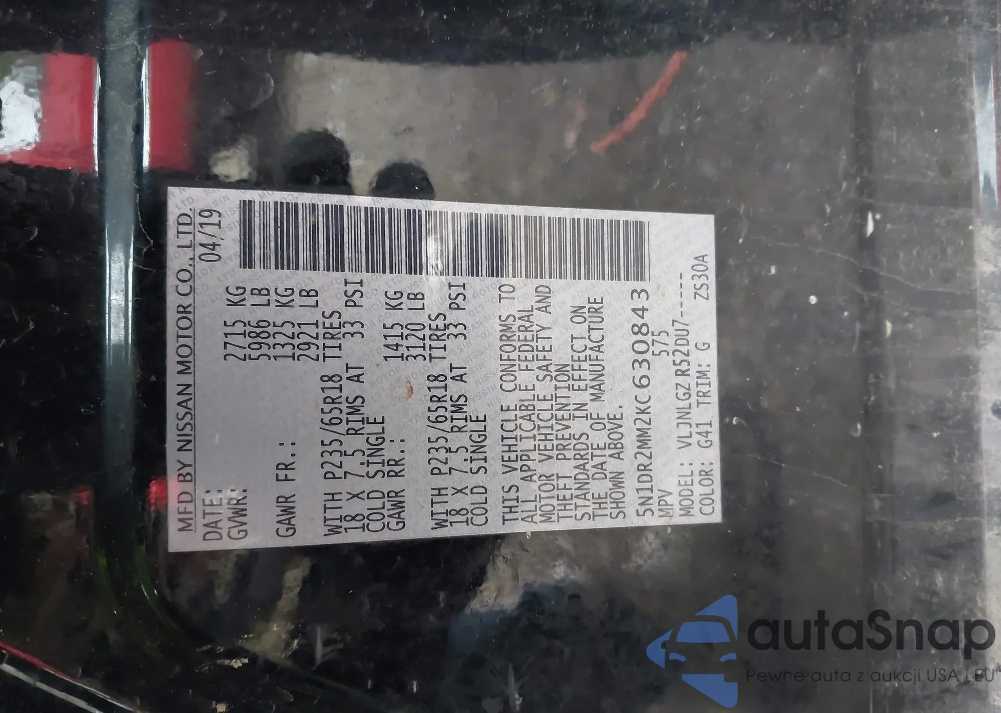 • VIN 5N1DR2MM2KC630843