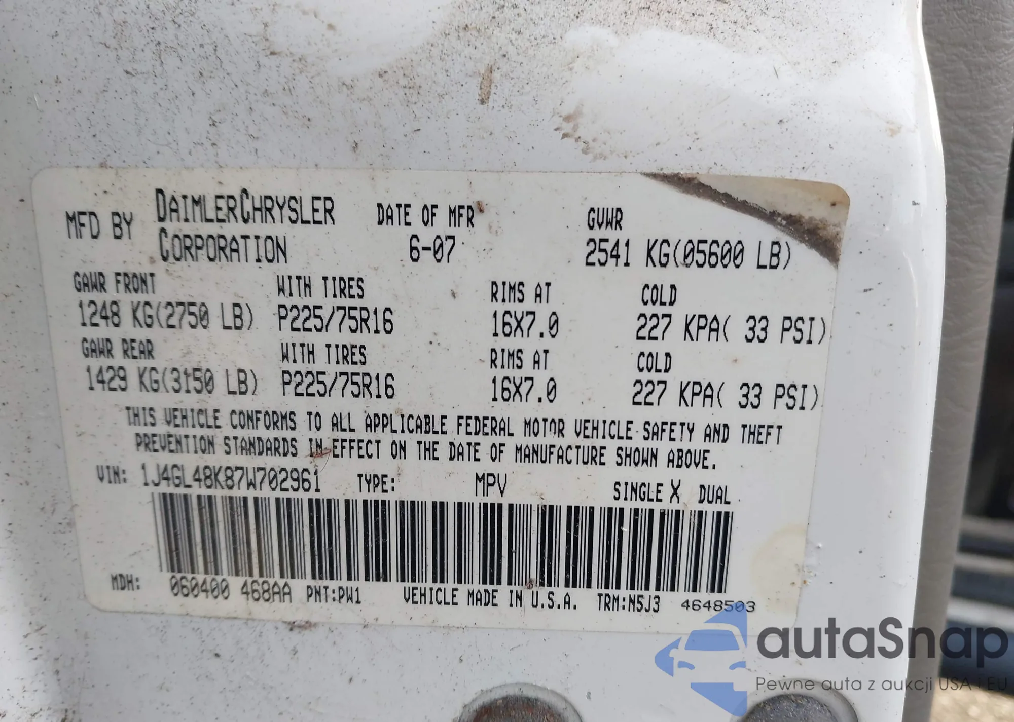 • VIN 1J4GL48K87W702961