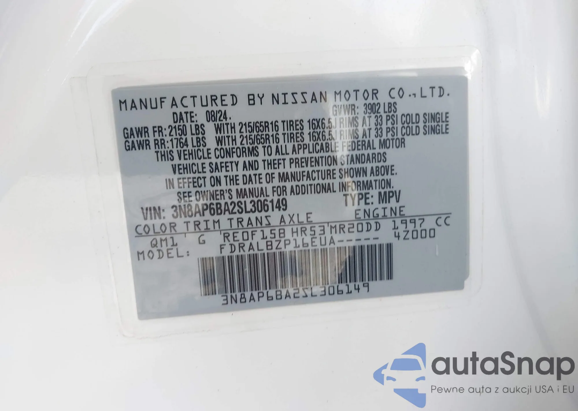 • VIN 3N8AP6BA2SL306149
