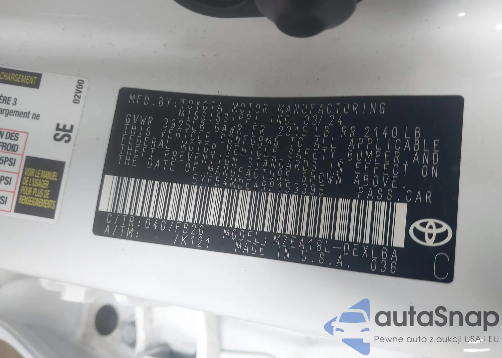 • VIN 5YFB4MDE4RP153395