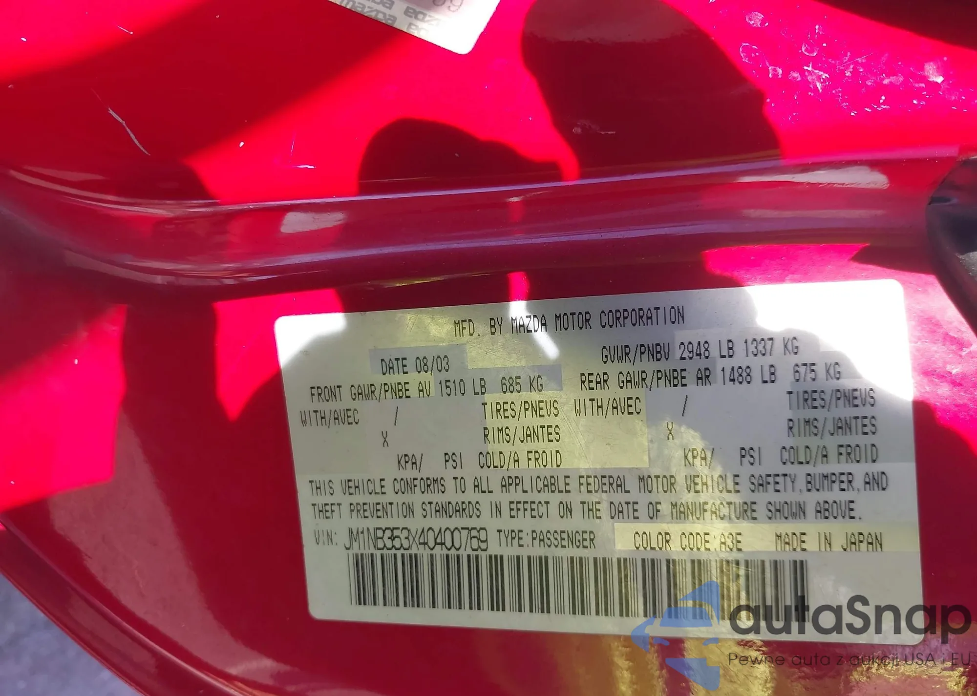 LOT: 43775181 VIN: JM1NB353X40400769