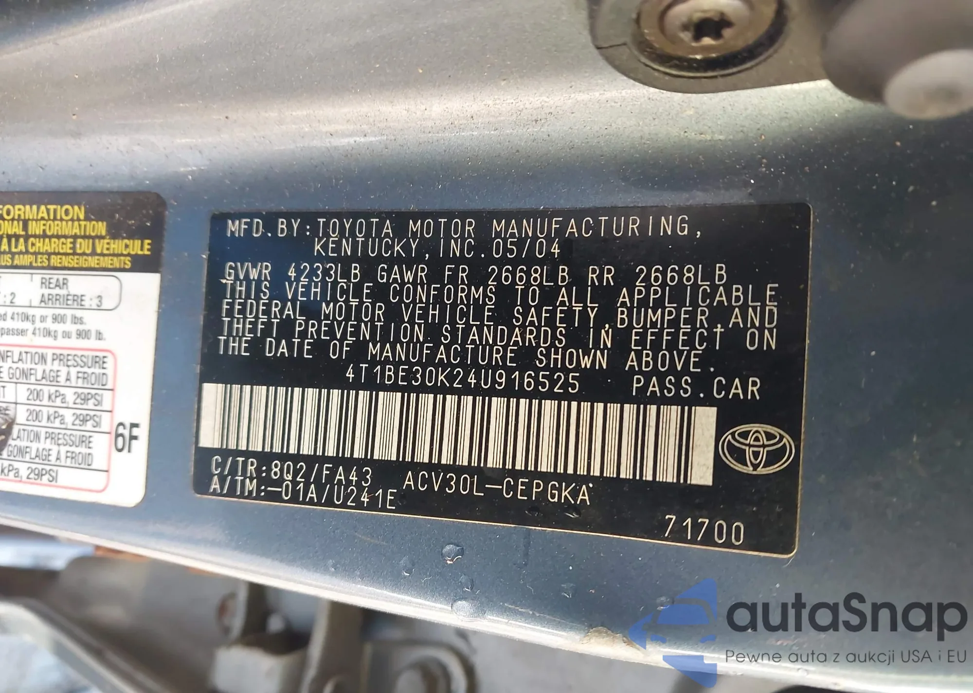 • VIN 4T1BE30K24U916525