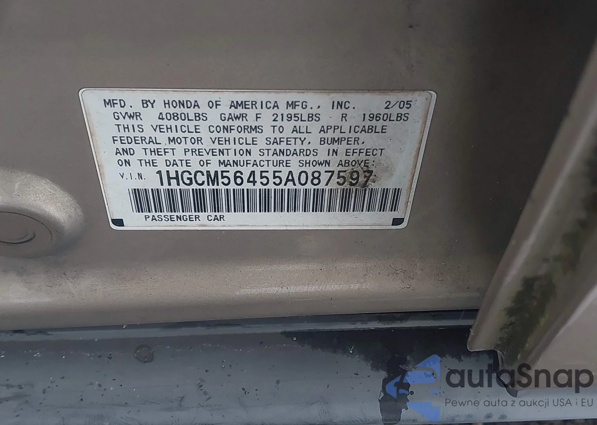 LOT: 43833669 VIN: 1HGCM56455A087597