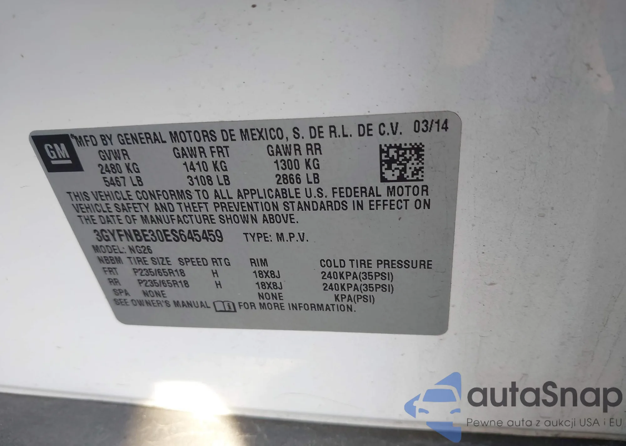 • VIN 3GYFNBE30ES645459