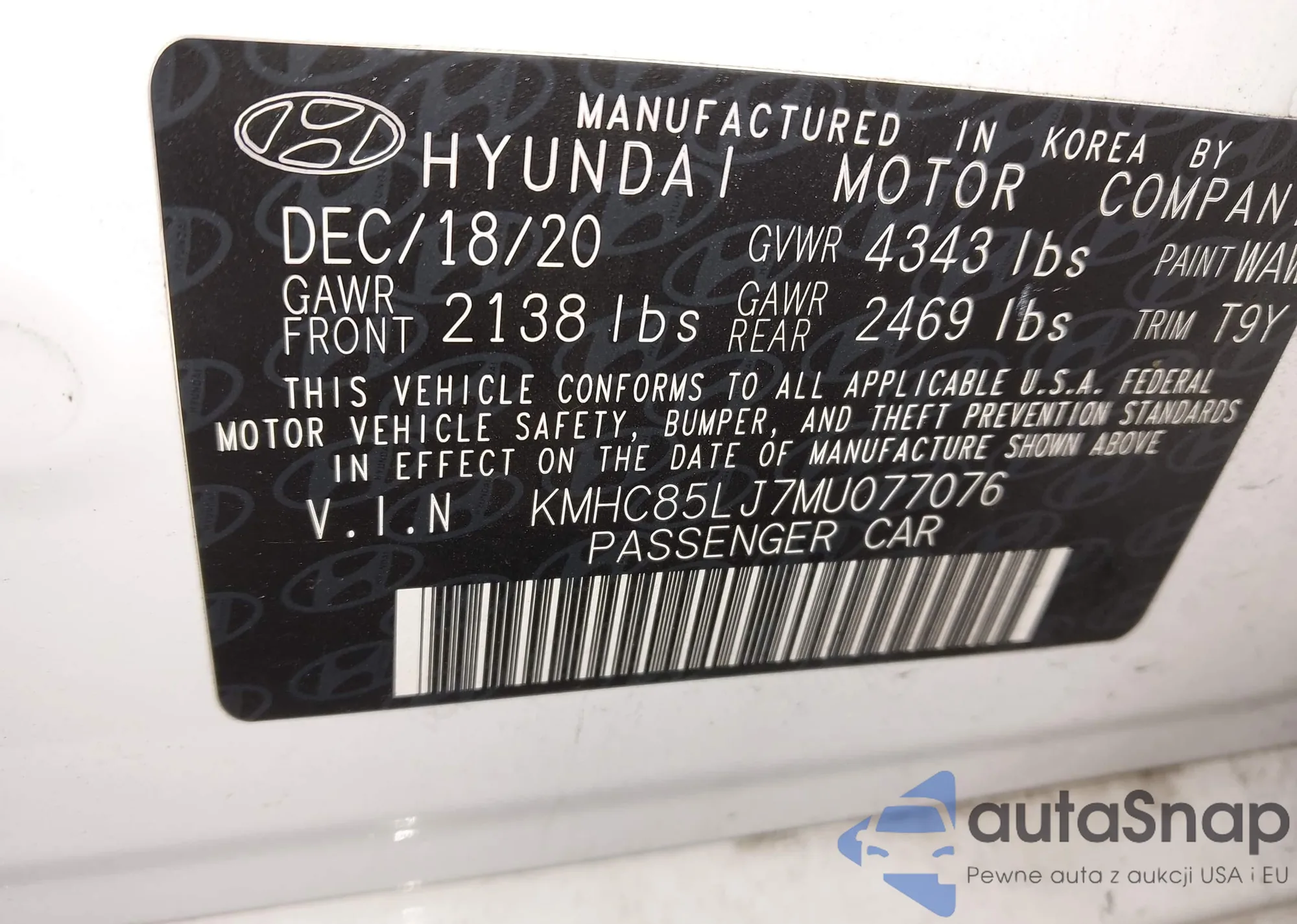 LOT: 43753821 VIN: KMHC85LJ7MU077076