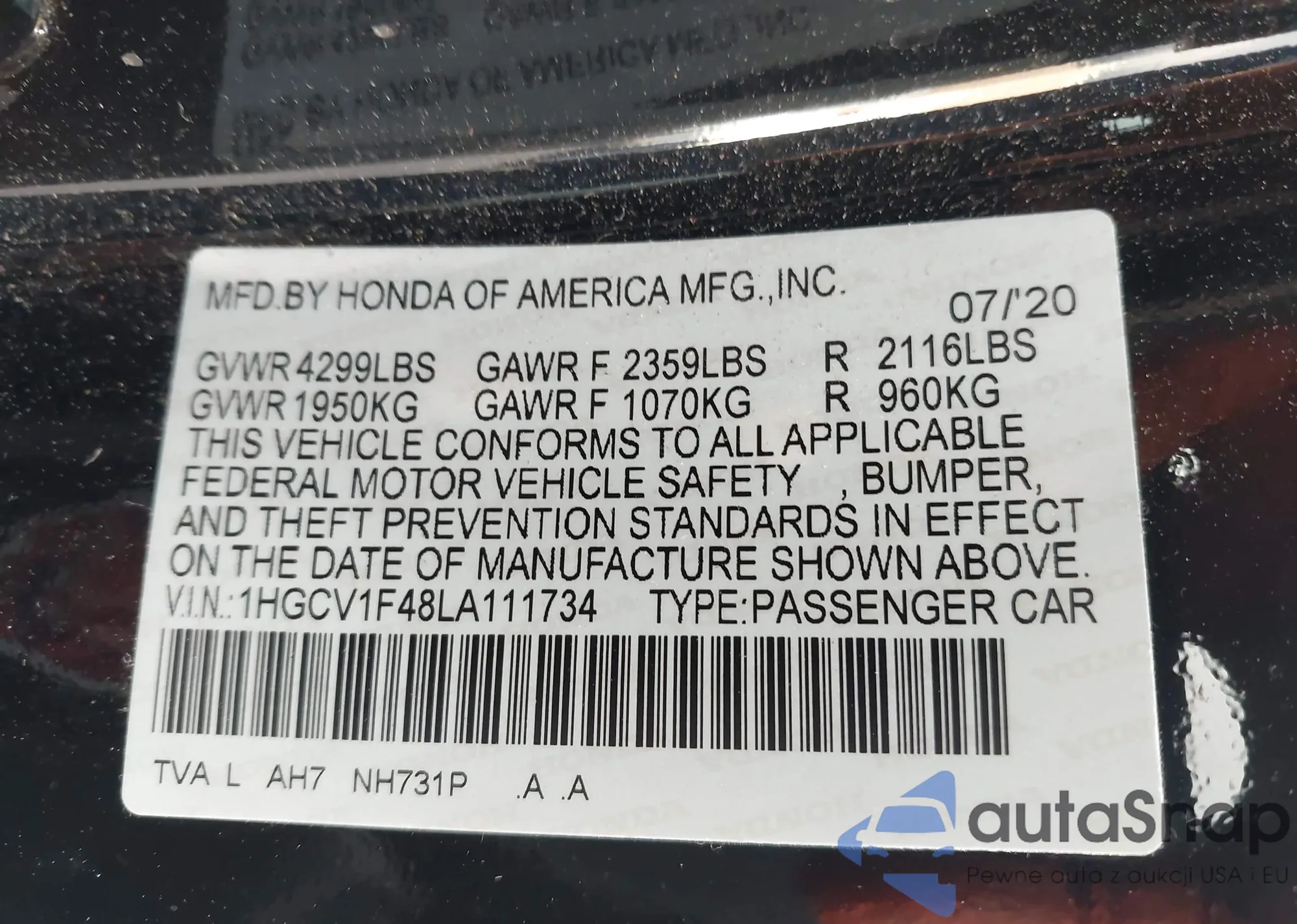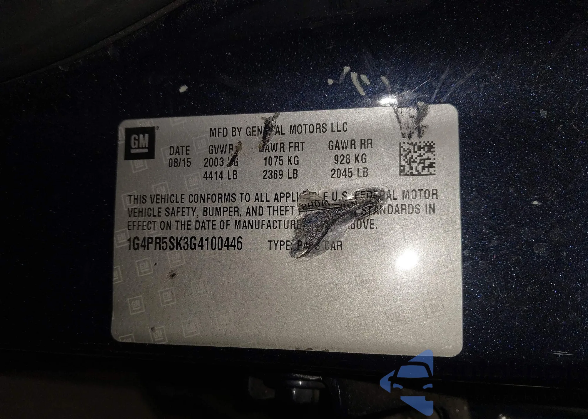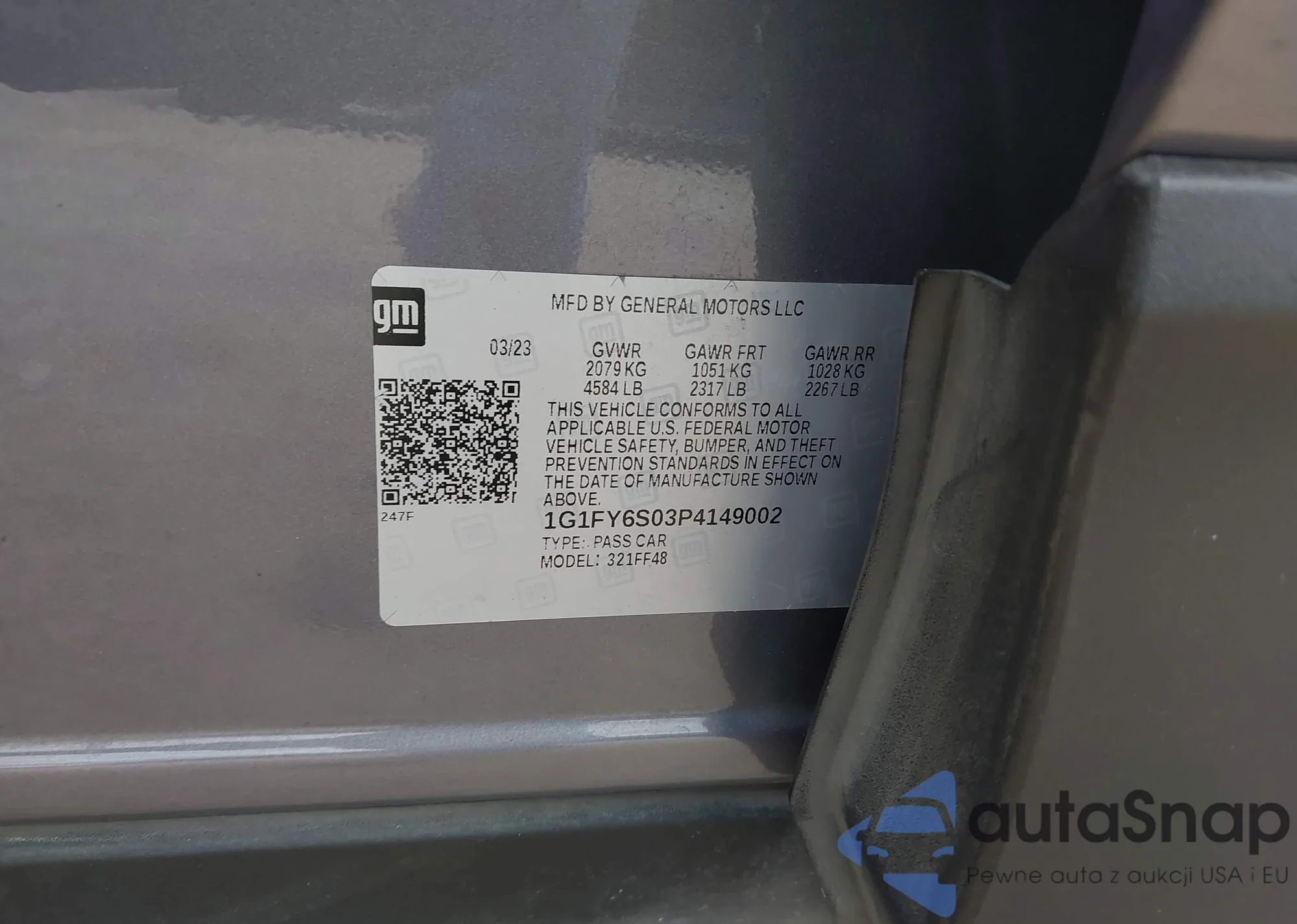 LOT: 43712193 VIN: 1G1FY6S03P4149002
